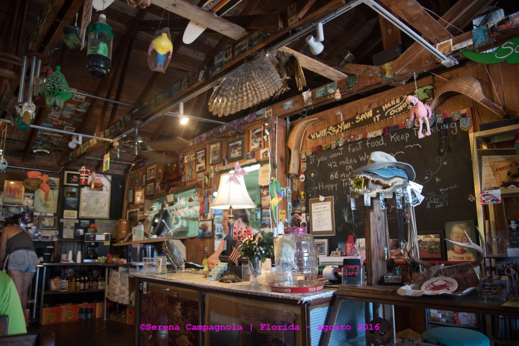 Terminato il giro siamo ripartiti per Homestead. Il pranzo l’abbiamo consumato per strada, in un posticino che mi ero segnata: Joanie’s Blue Crab Cafe. Confermo ciò che avevo letto e che mi ha spinta a inserirlo tra le possibili tappe culinarie, ossia cibo squisito ad un buon prezzo. Abbiamo preso fritto misto con alligatore e zampe di rana. La cameriera, veloce, gentile ed ospitale. Il locale è molto particolare.