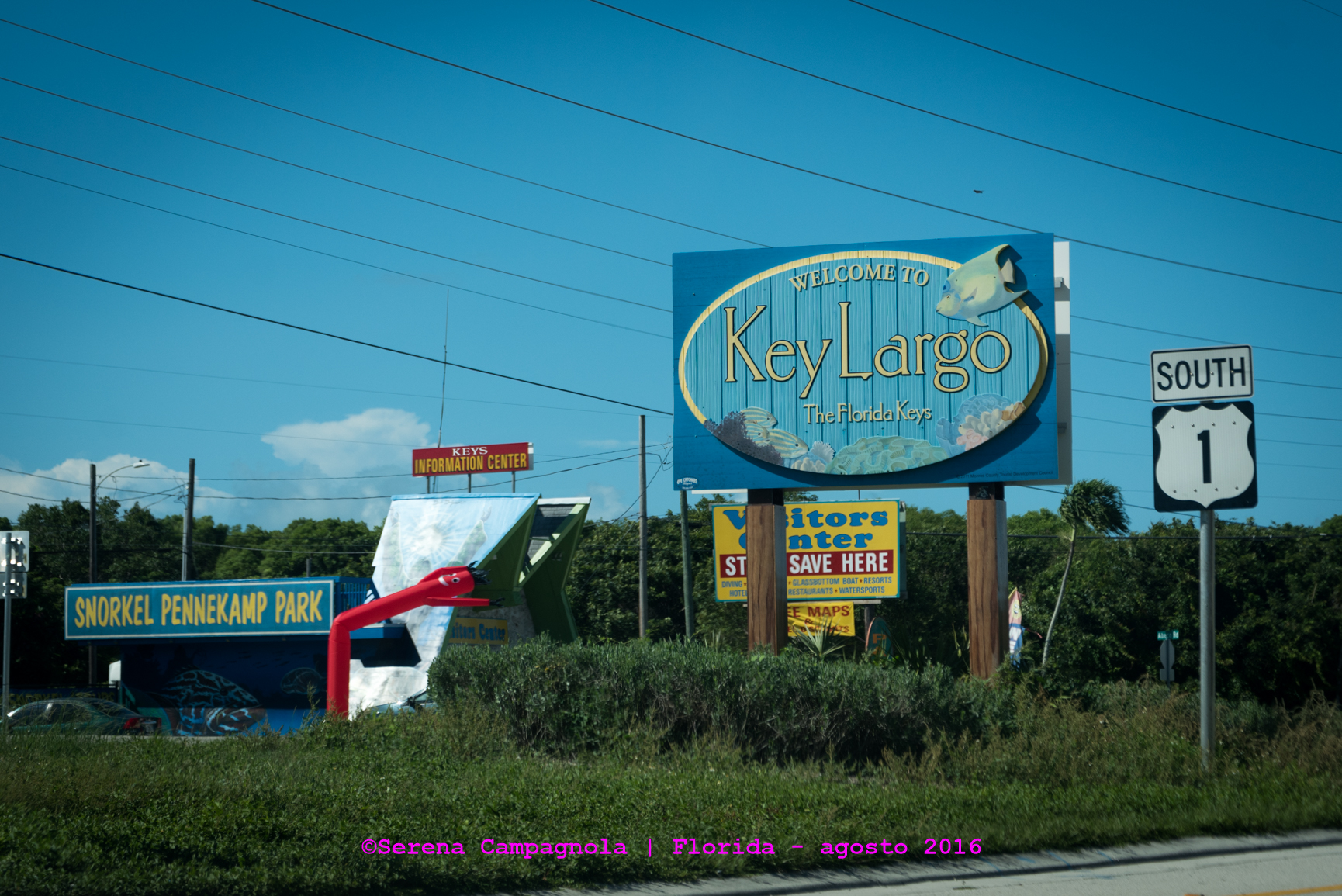Dopo la buona colazione, siamo partiti in direzione sud per Key Largo e qui abbiamo avuto la seconda delusione di questa parte del viaggio. L’idea era infatti di fare un’uscita in catamarano per snorkeling sulla barriera corallina con John Pennekamp Coral Reef State Park. Purtroppo ci avvertono che ci sono le onde molto alte, di conseguenza i boccagli inutilizzabili e caldamente ci sconsigliano di farla.
