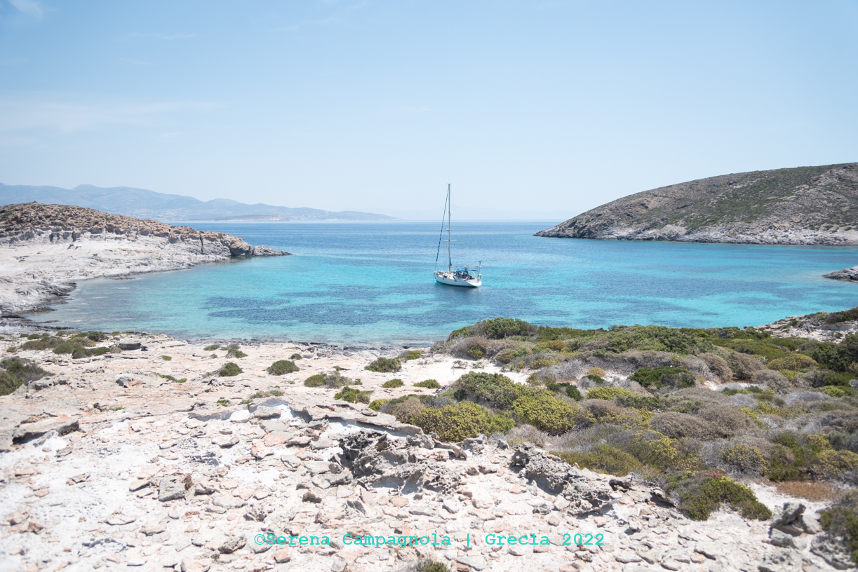 Un giorno ci siamo diretti verso il sud dell’isola per raggiungere la splendida baia di Farangas. Anche qui una parte è attrezzata e una parte è libera e le acque sono calme anche quando tira il Meltemi.