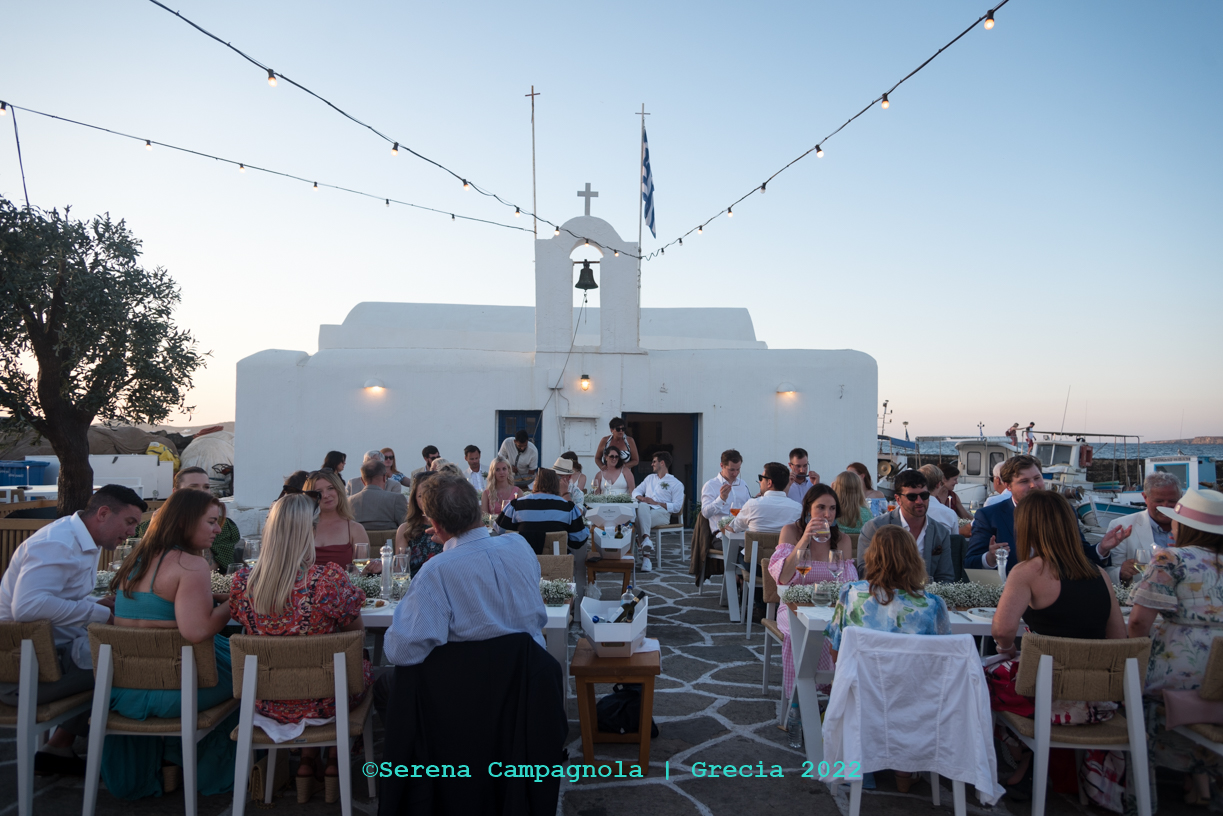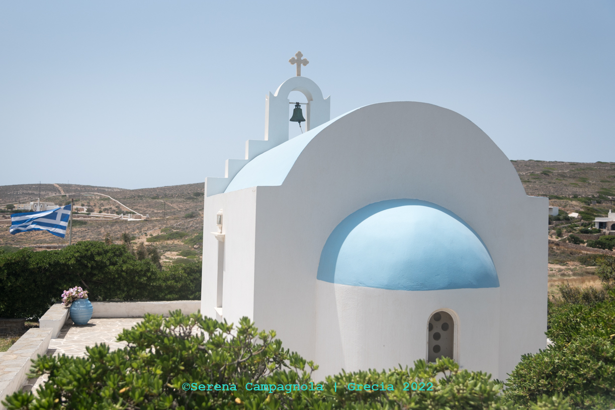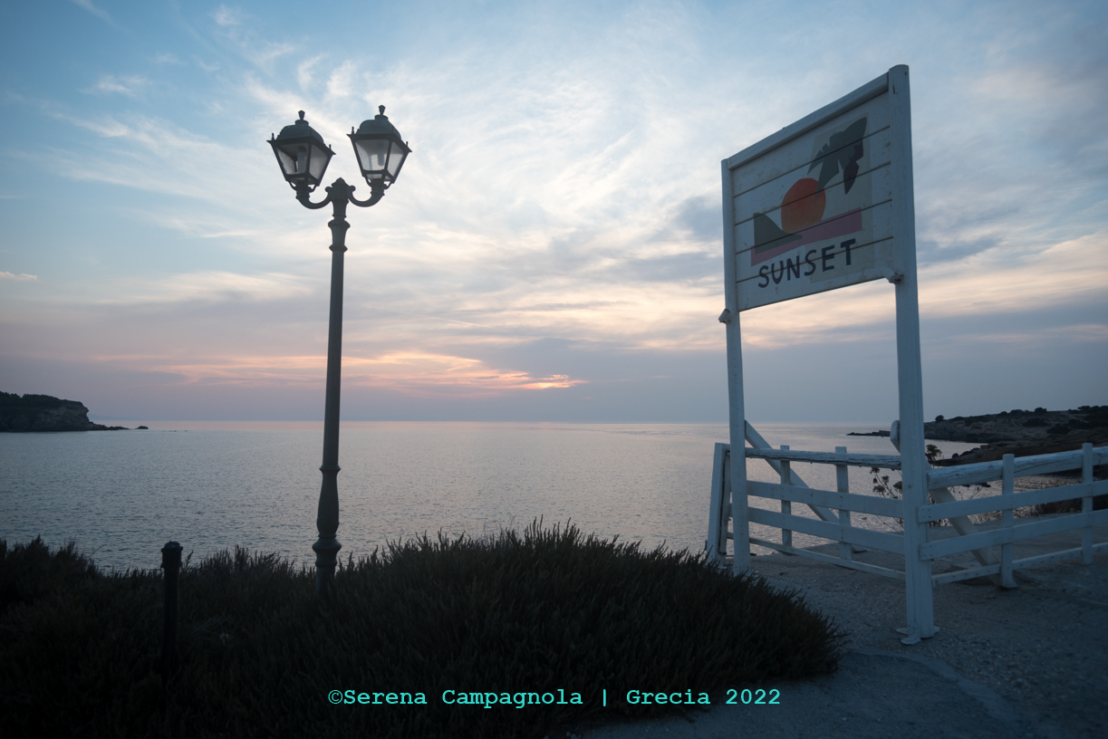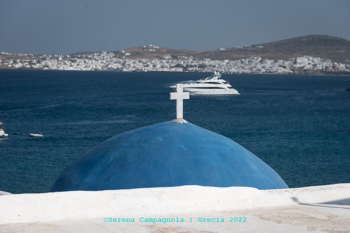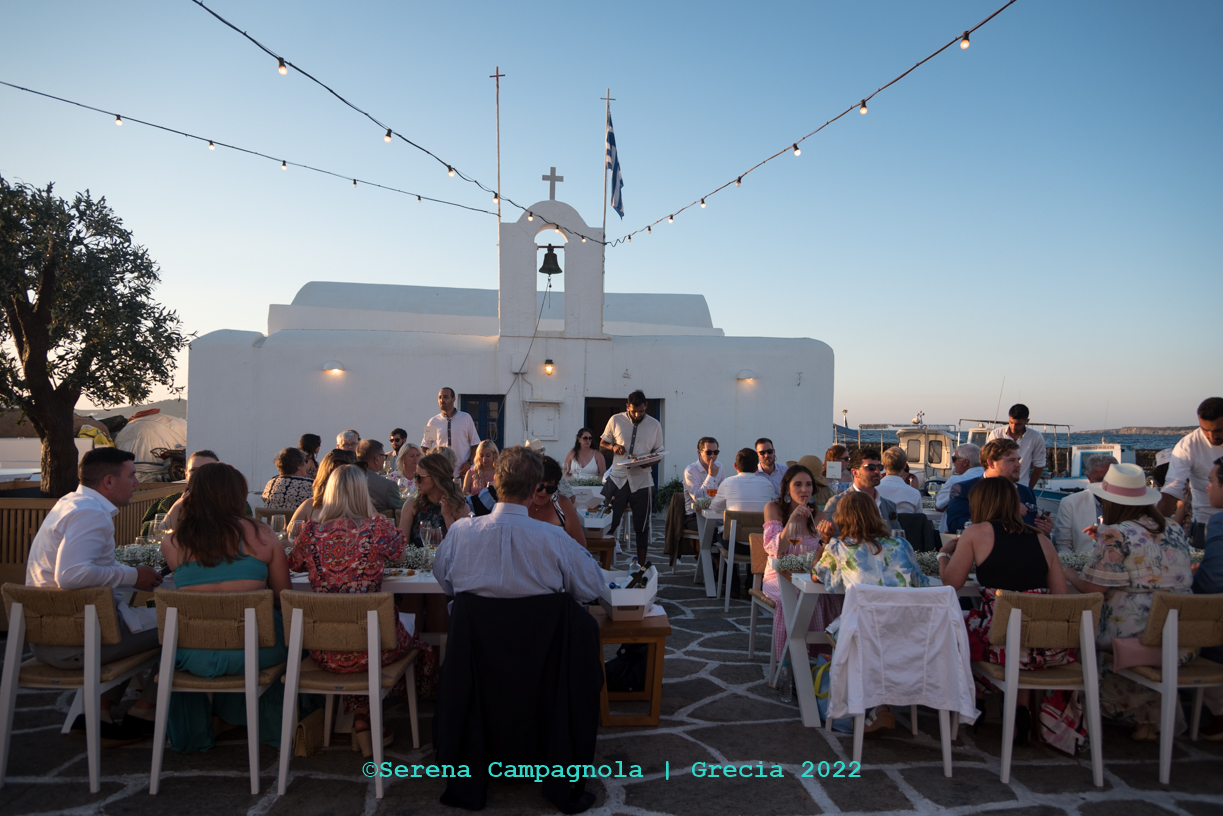 Rientrando da Santa Maria, abbiamo notato una chiesa che secondo me ha una vista pazzesca su Naoussa e il suo golfo, purtroppo c’è un cartello che indica una proprietà privata e così ci siamo fermati al cancello. Ci siamo tornati il giorno successivo poco prima del tramonto.
