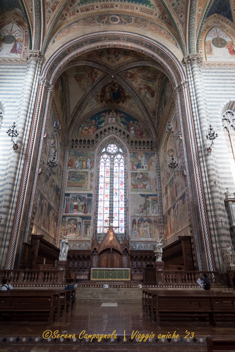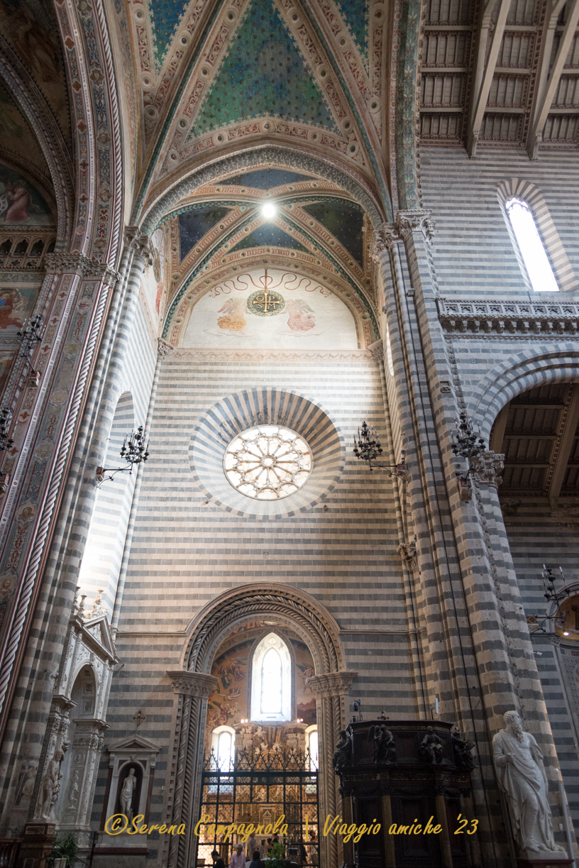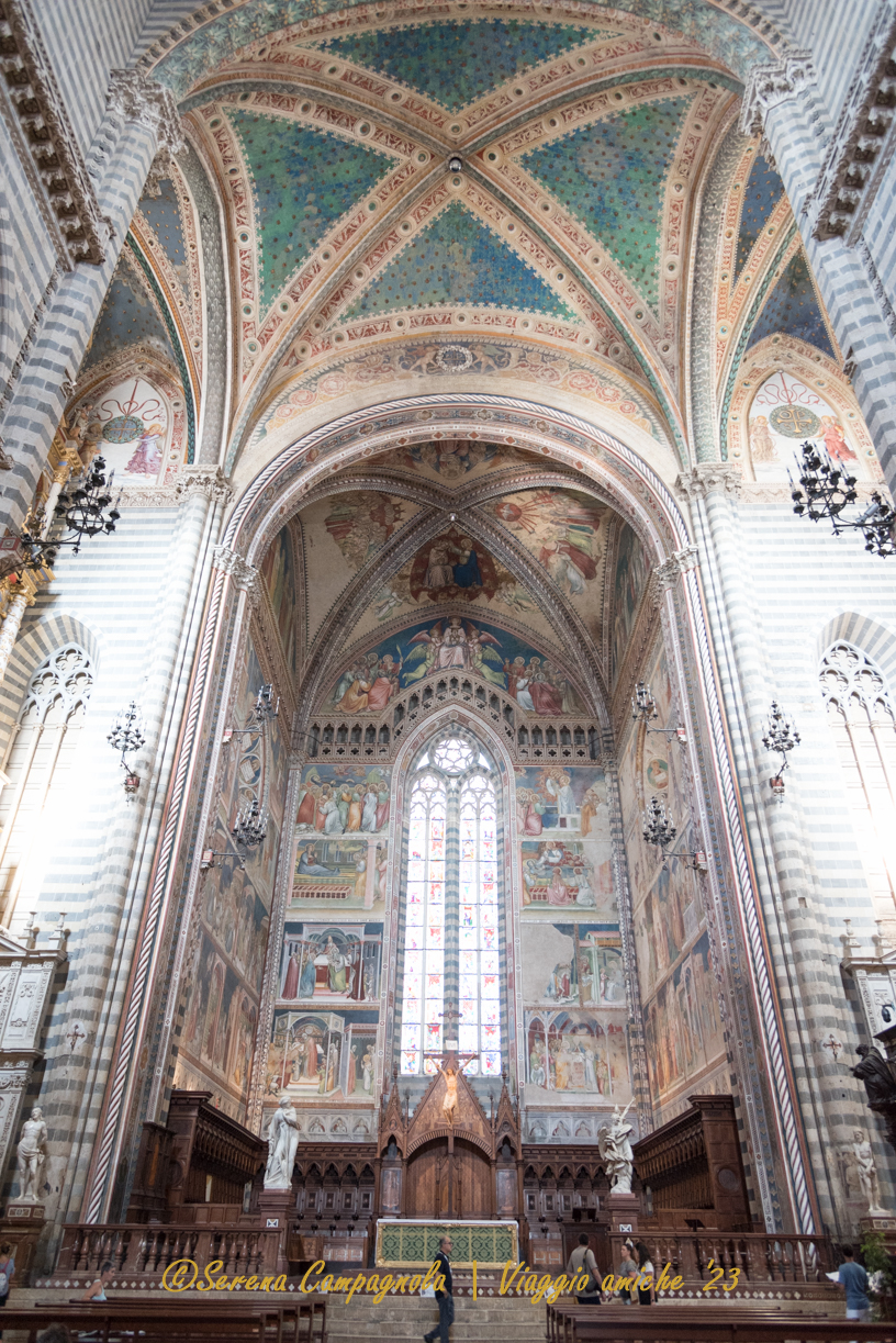 Il Duomo. Dedicato a Santa Maria Assunta, rientra nella lista delle più grandi opere medievali italiane. Imponente è la facciata che si presenta con tre grandi portali e il suo rosone a doppio giro di colonnine con archetti. L’interno del Duomo di Orvieto è ricco di capolavori. Impossibile non fermarsi ad ammirare la Cappella di San Brizio, difficile non rimanere a bocca aperta dinanzi a tanta bellezza.