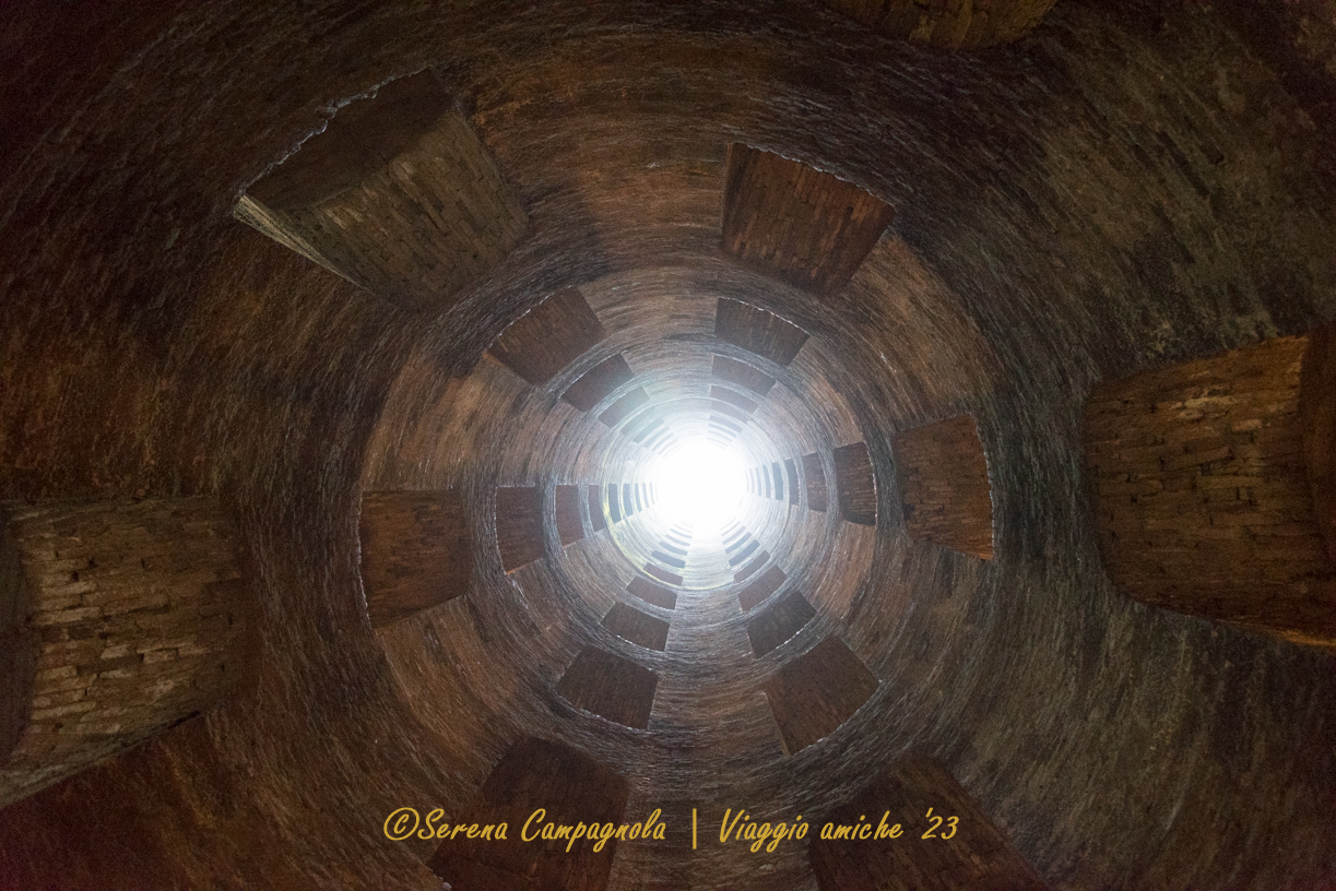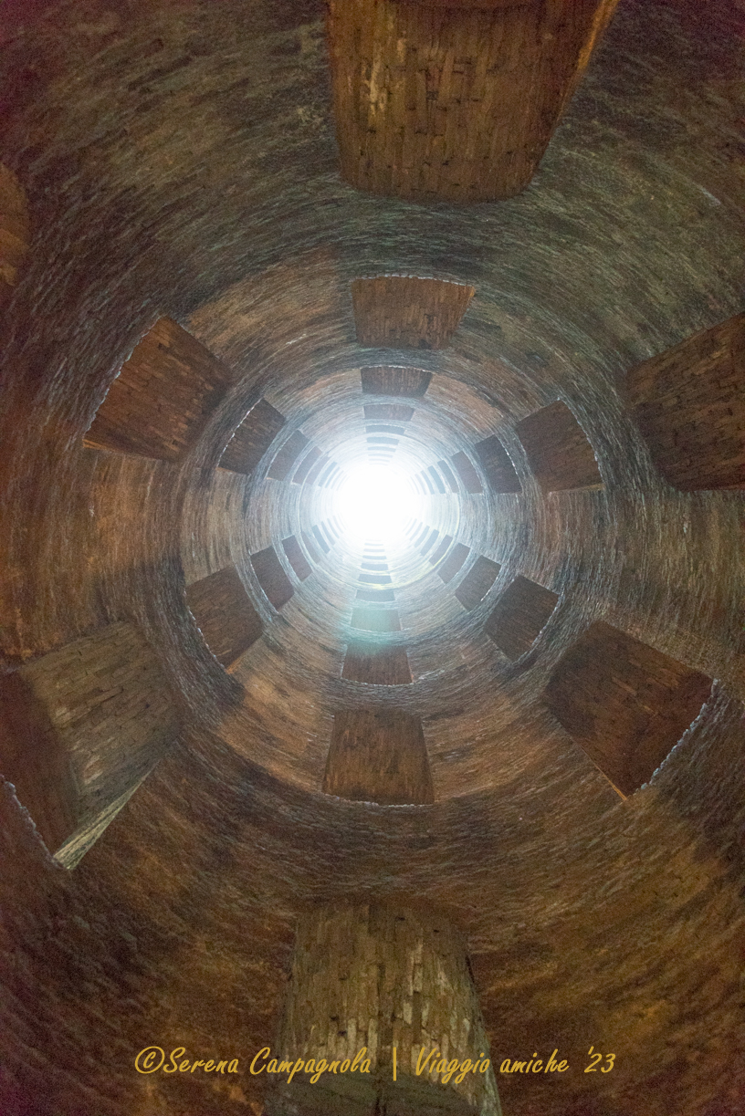 Il Pozzo si presenta con una struttura cilindrica con due scale elicoidali che non si incontrano: una per la salita e l’altra per la discesa, così da evitare l’incontro tra chi andava a prendere l’acqua e chi saliva già carico. Il pozzo è illuminato da ben 72 finestre. Indescrivibile è il gioco di luci ed ombre che si vanno a creare nei suoi anfratti.