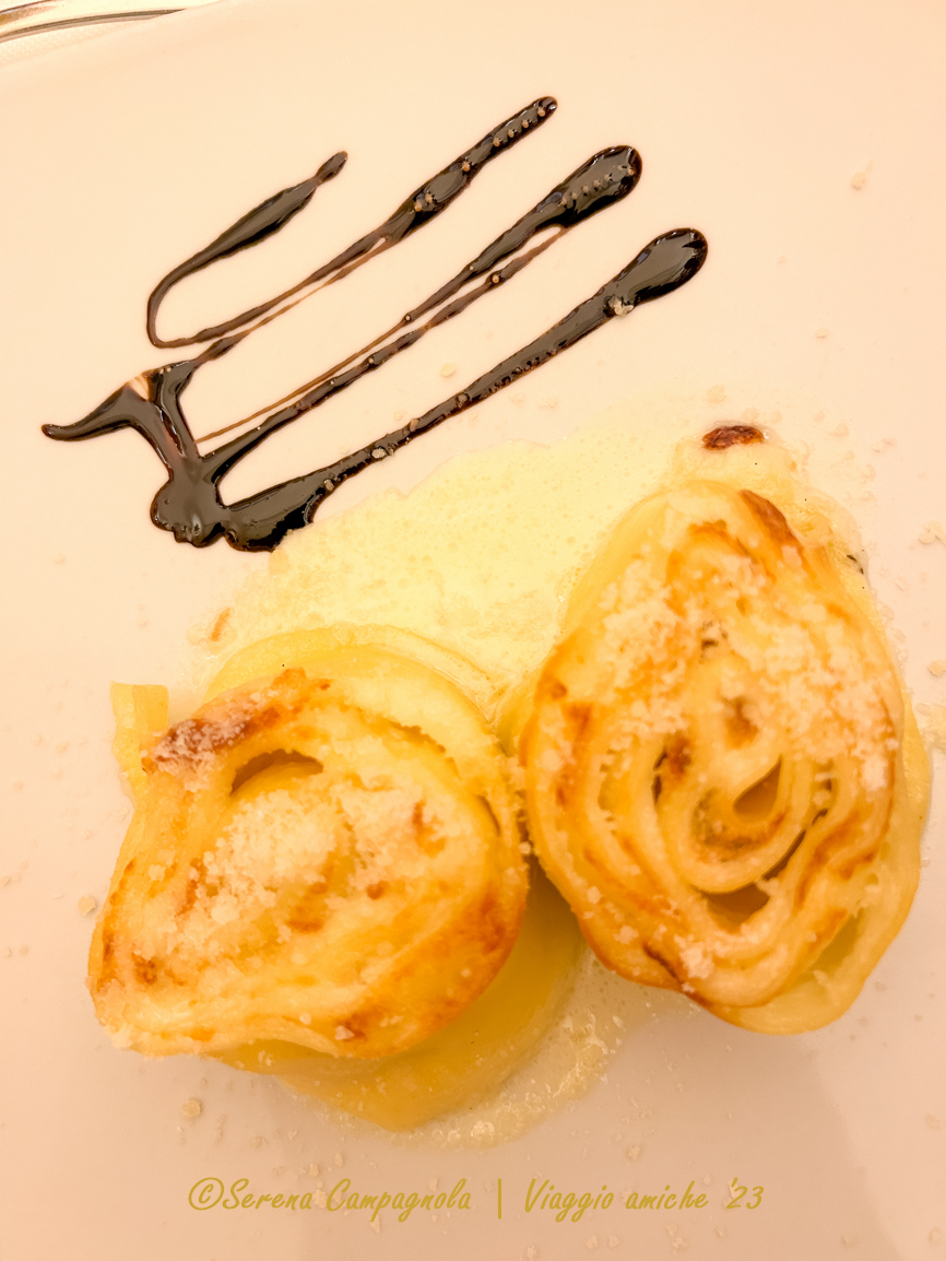 Per la terza cena abbiamo scelto Osteria da Mamma Angela. In questa osteria abbiamo preso: due antipasti, due umbrichelli pistacchio e speck, una parmigiana di melanzane, un baccalà all’Orvietana, un contorno, acqua, due bottiglie di vino (€ 20/cad), una birra artigianale (€ 8), acqua, un dolce e due caffè. Spesa totale € 150. Il ristorante, che si affaccia sulla splendida Piazza del Popolo, è semplice ed elegante allo stesso tempo. L’ambiente è piacevole e rilassante, i piatti eccellenti, con materie prime di qualità, hanno il giusto equilibrio tra tradizione e innovazione. Lo staff è accogliente e simpatico.