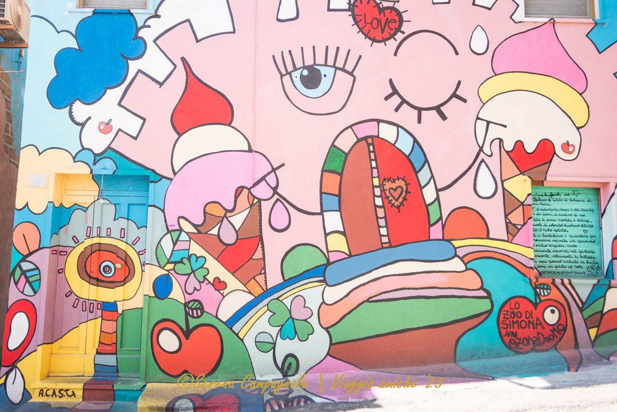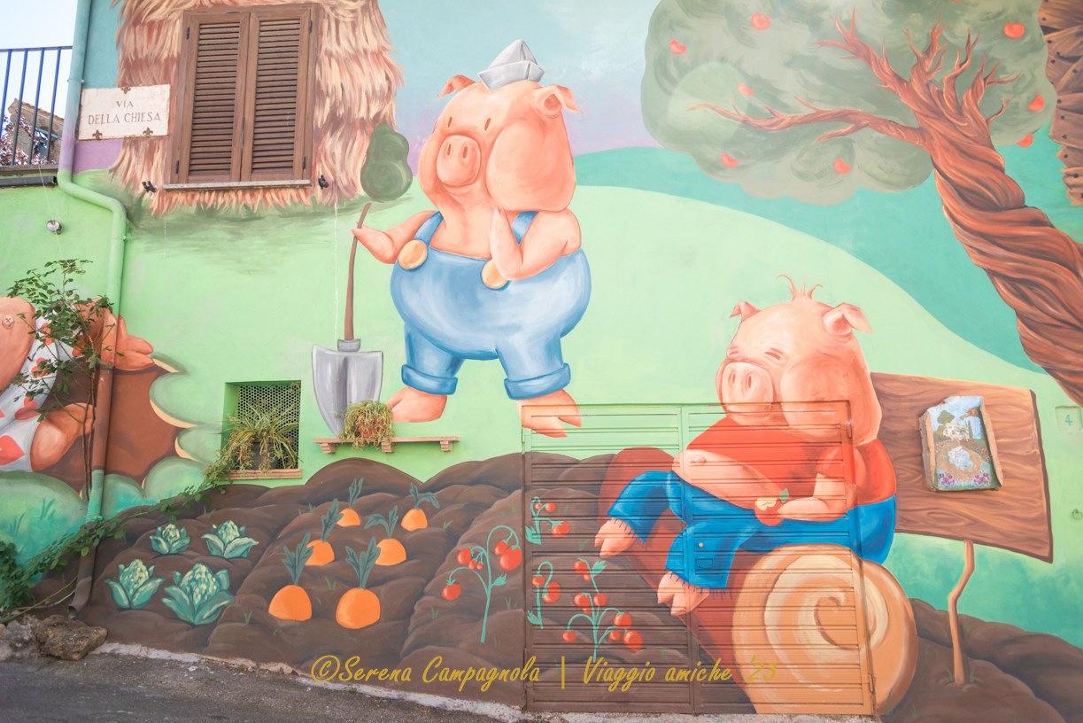 Negli anni gli street artist hanno dipinto vie, vicoli e piazze del borgo trasformandoli in luoghi magici. Ad oggi sono più di 60 le opere realizzate. L’obiettivo era quello di arrivare a 100 opere entro fine 2023.