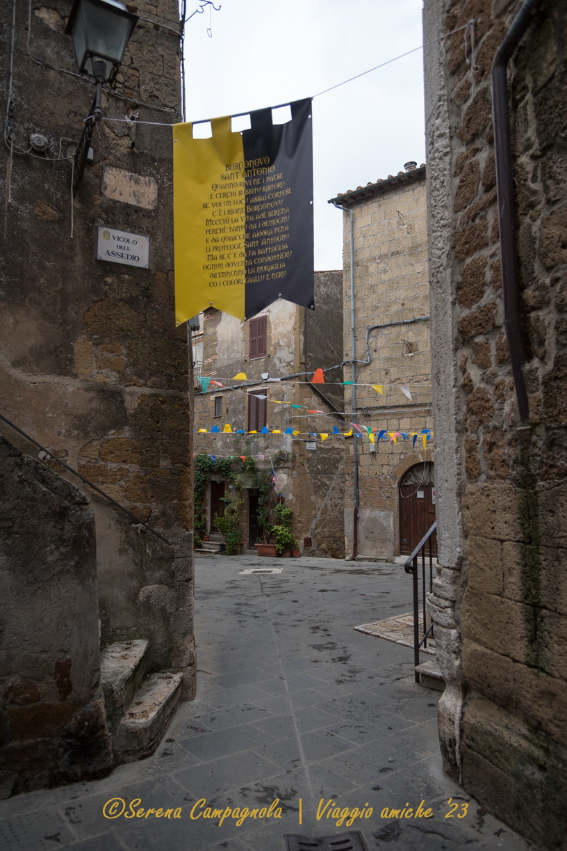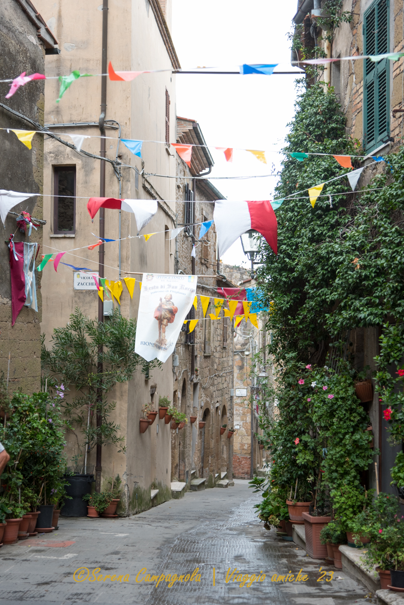 La cittadina di Bolsena, con il suo borgo medievale, sorge su un colle alle pendici dei Monti Volsini, in una bella posizione panoramica. Il centro storico si è ben conservato nei secoli. Abbiamo iniziato la breve visita da Porta San Francesco e, superato l’arco, abbiamo percorso il vicolo principale, molto suggestivo e curato.