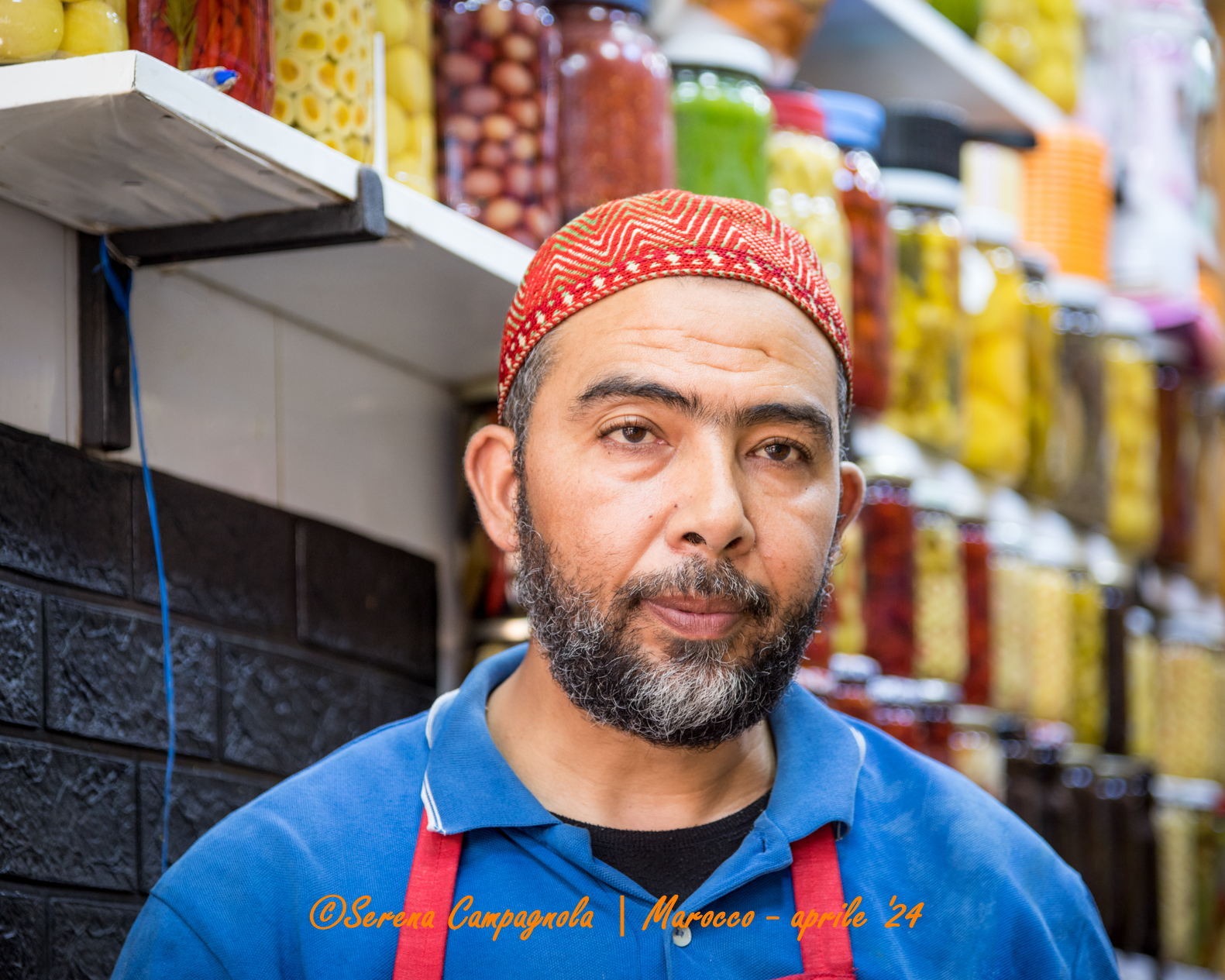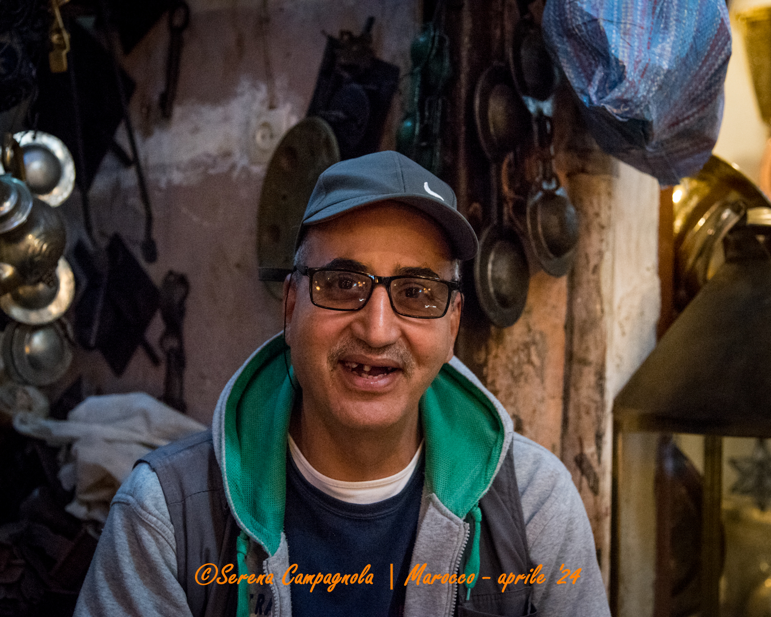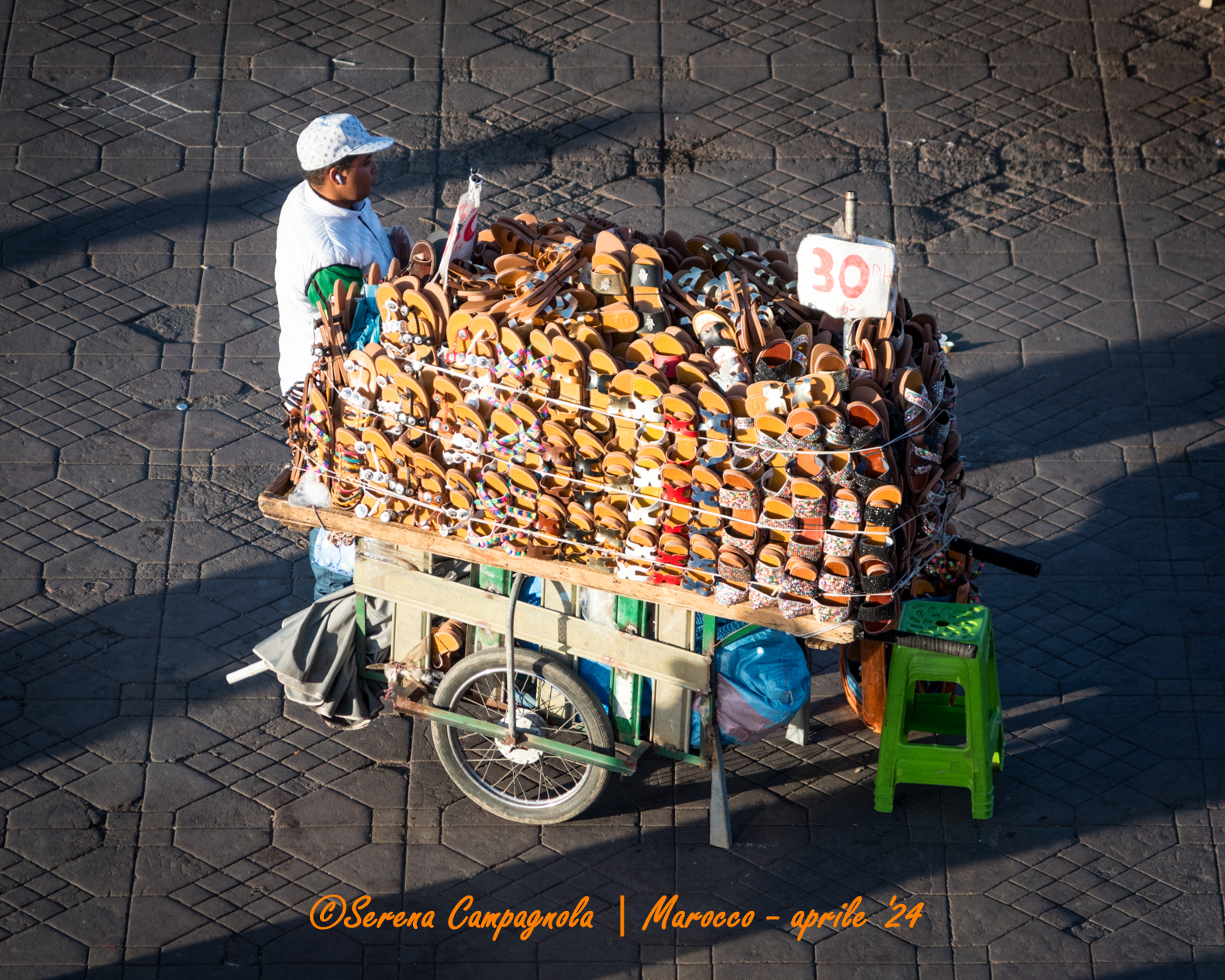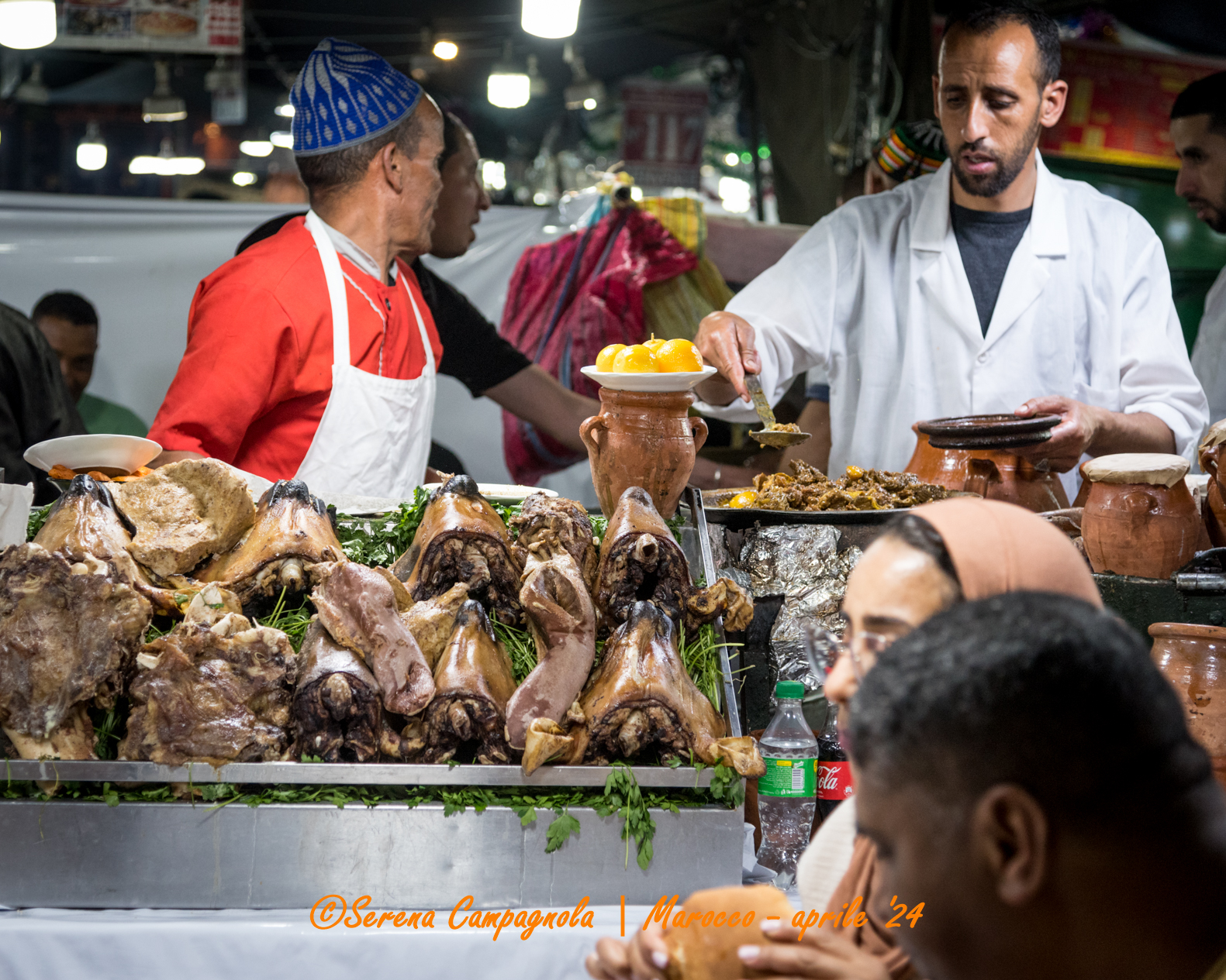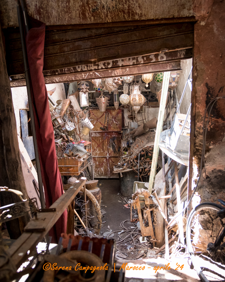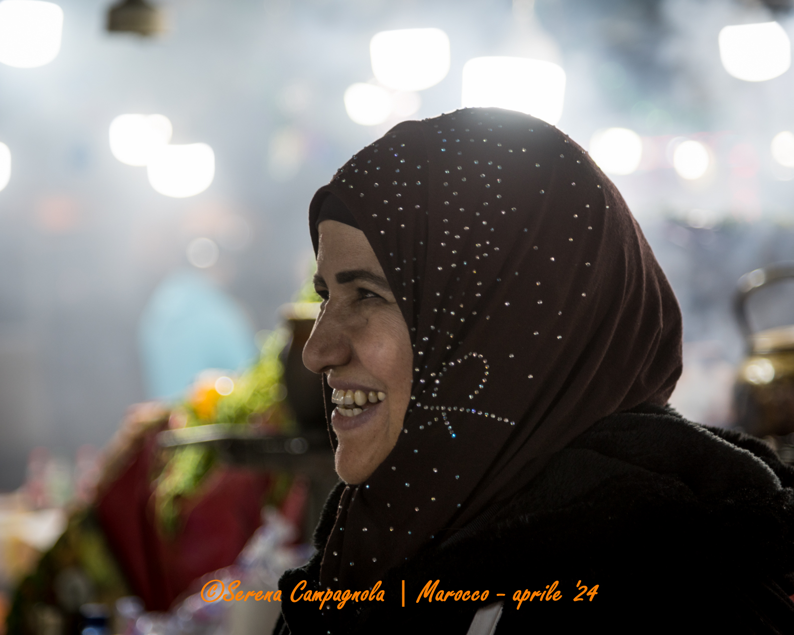 I souk di Marrakech possono sembrare stressanti ma io li adoro. Amo i mercati di tutto il mondo: mi piace farmi guidare dai profumi del cibo e delle spezie, dai colori delle stoffe e dei tappeti, dal brusio e dal caos che li caratterizzano. Senza accorgervene, sarete risucchiati in un dedalo di viuzze e vi ritroverete a vagare all’interno di questo labirinto fatto di incroci infiniti, dove spesso passano delle motociclette e mezzi di trasporto bizzarri. I negozianti sono quasi sempre sull’uscio dei loro negozi, pronti a invitarvi a entrare appena il vostro sguardo distrattamente sfiorerà qualcosa in esposizione. Vi cattureranno cercando di indovinare la vostra provenienza, facendovi mille complimenti soprattutto se siete donne, offrendovi un the alla menta di benvenuto. Non è facile sfuggire ai loro modi accattivanti, preparatevi a dire tantissimi “No, grazie!”. Io in cambio chiedevo di poterli fotografare e spesso la risposta era una mano davanti al volto.