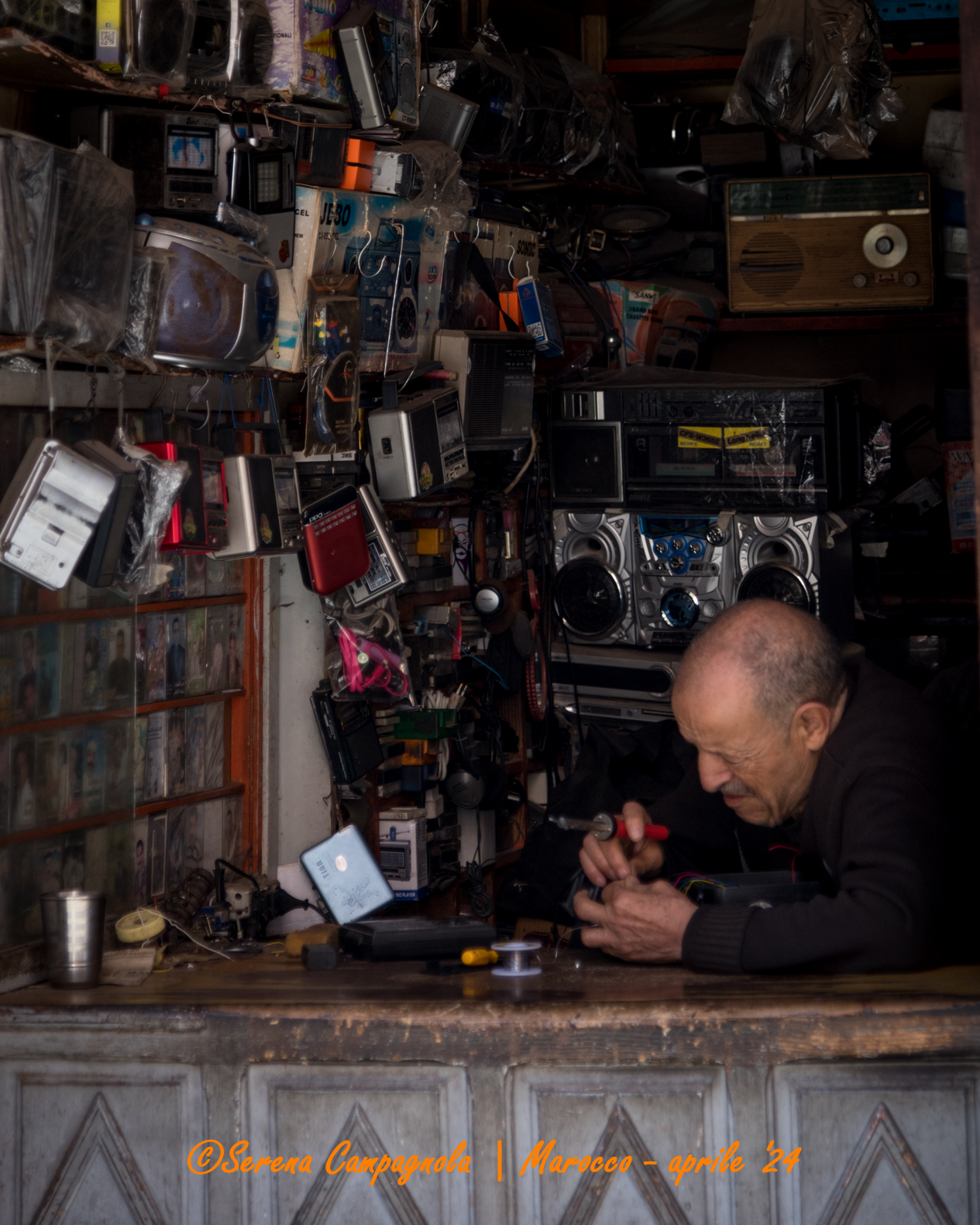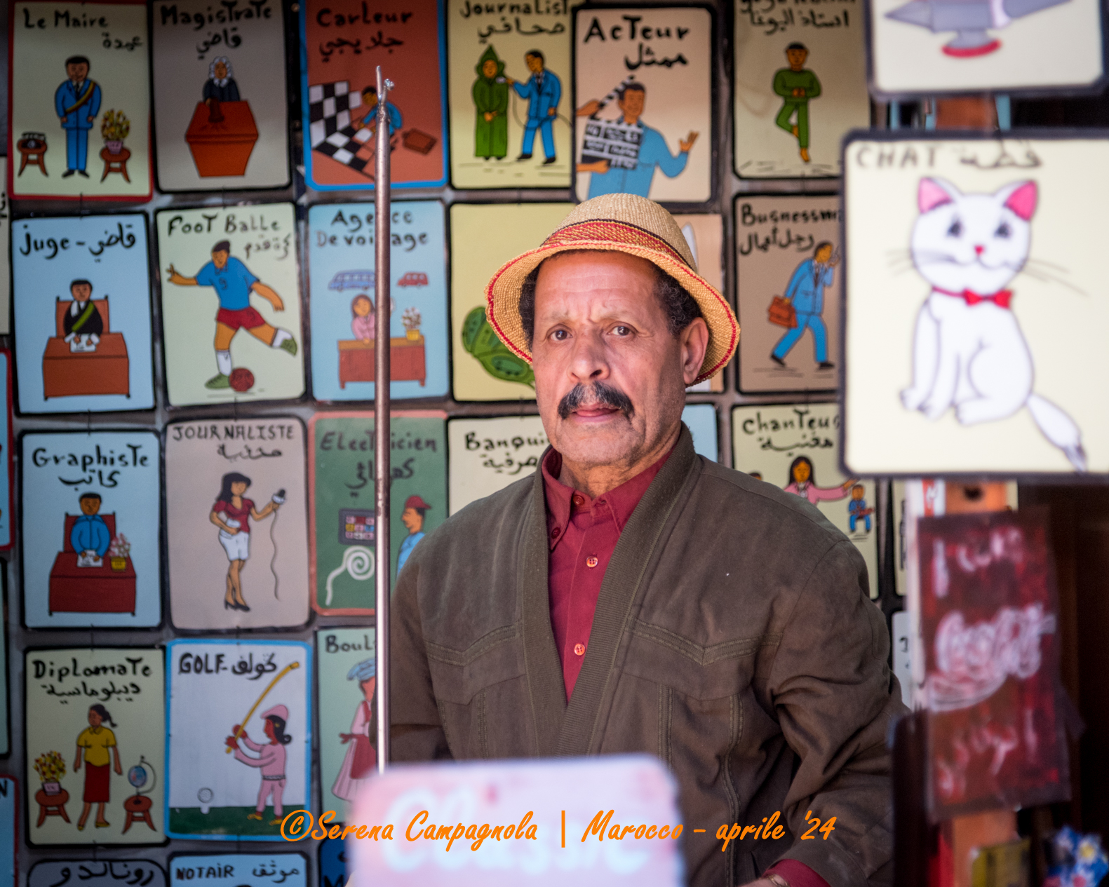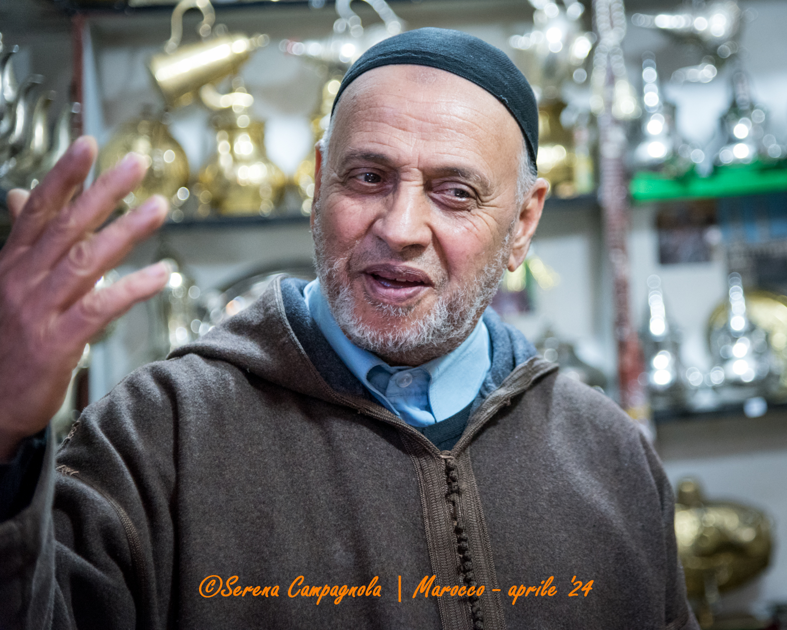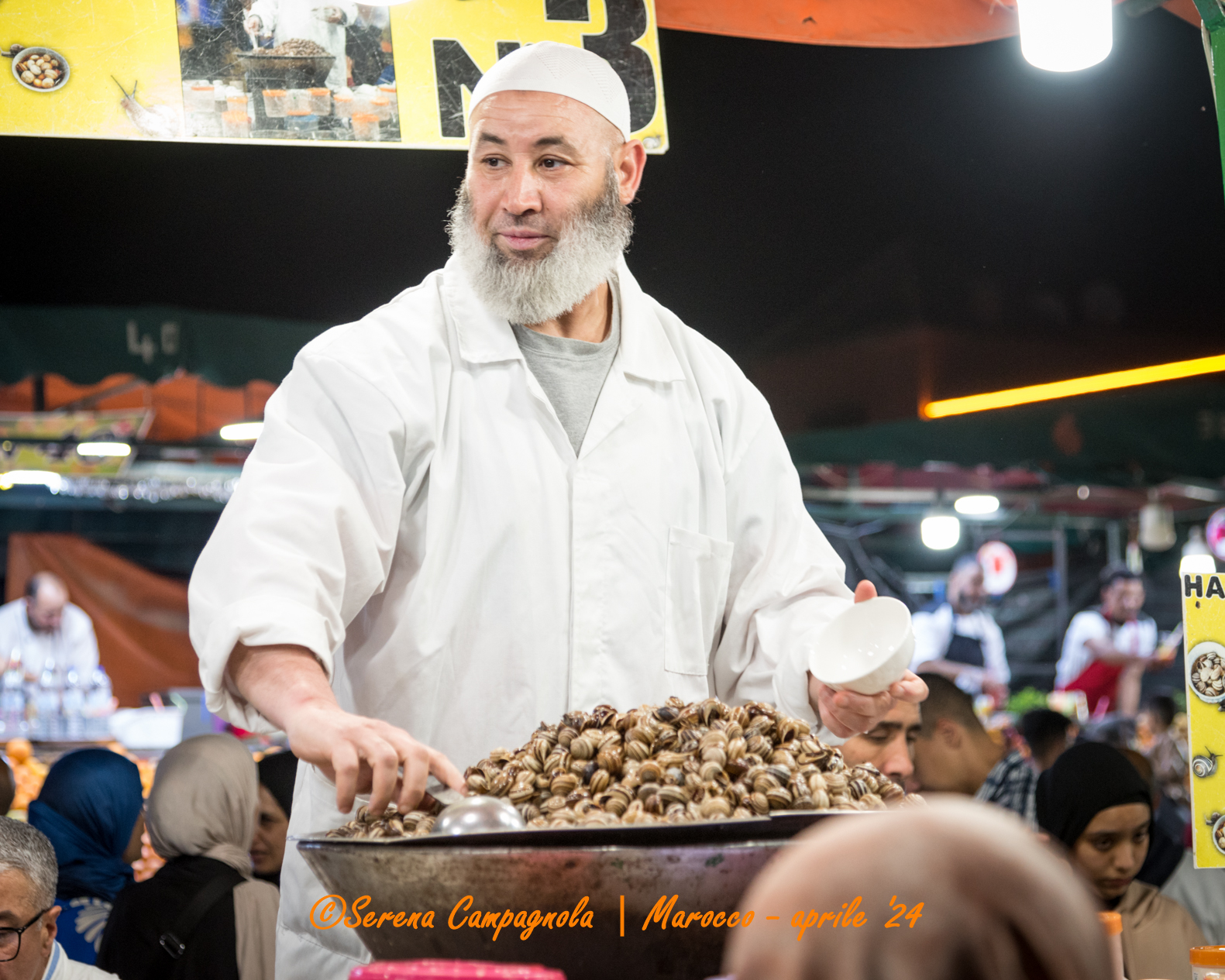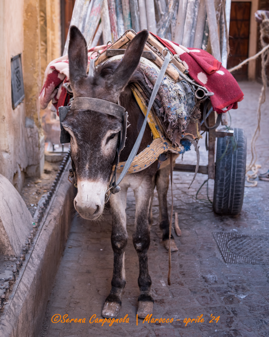 I souk di Marrakech possono sembrare stressanti ma io li adoro. Amo i mercati di tutto il mondo: mi piace farmi guidare dai profumi del cibo e delle spezie, dai colori delle stoffe e dei tappeti, dal brusio e dal caos che li caratterizzano. Senza accorgervene, sarete risucchiati in un dedalo di viuzze e vi ritroverete a vagare all’interno di questo labirinto fatto di incroci infiniti, dove spesso passano delle motociclette e mezzi di trasporto bizzarri. I negozianti sono quasi sempre sull’uscio dei loro negozi, pronti a invitarvi a entrare appena il vostro sguardo distrattamente sfiorerà qualcosa in esposizione. Vi cattureranno cercando di indovinare la vostra provenienza, facendovi mille complimenti soprattutto se siete donne, offrendovi un the alla menta di benvenuto. Non è facile sfuggire ai loro modi accattivanti, preparatevi a dire tantissimi “No, grazie!”. Io in cambio chiedevo di poterli fotografare e spesso la risposta era una mano davanti al volto.