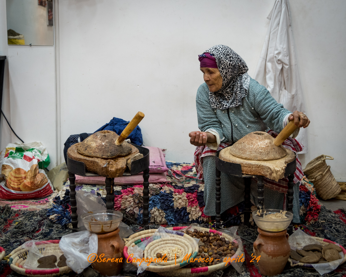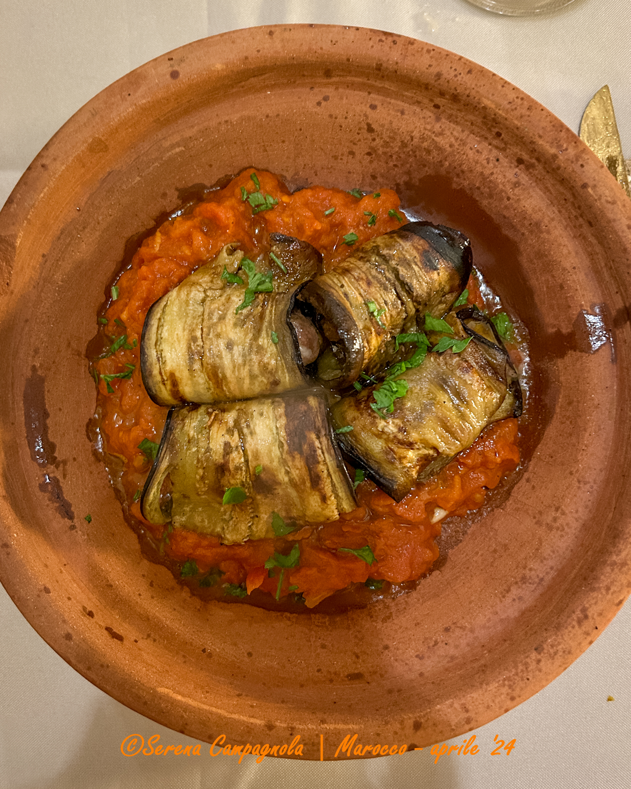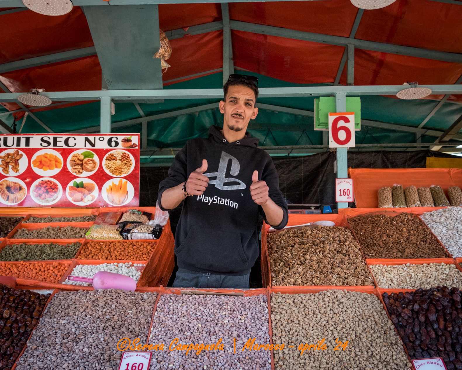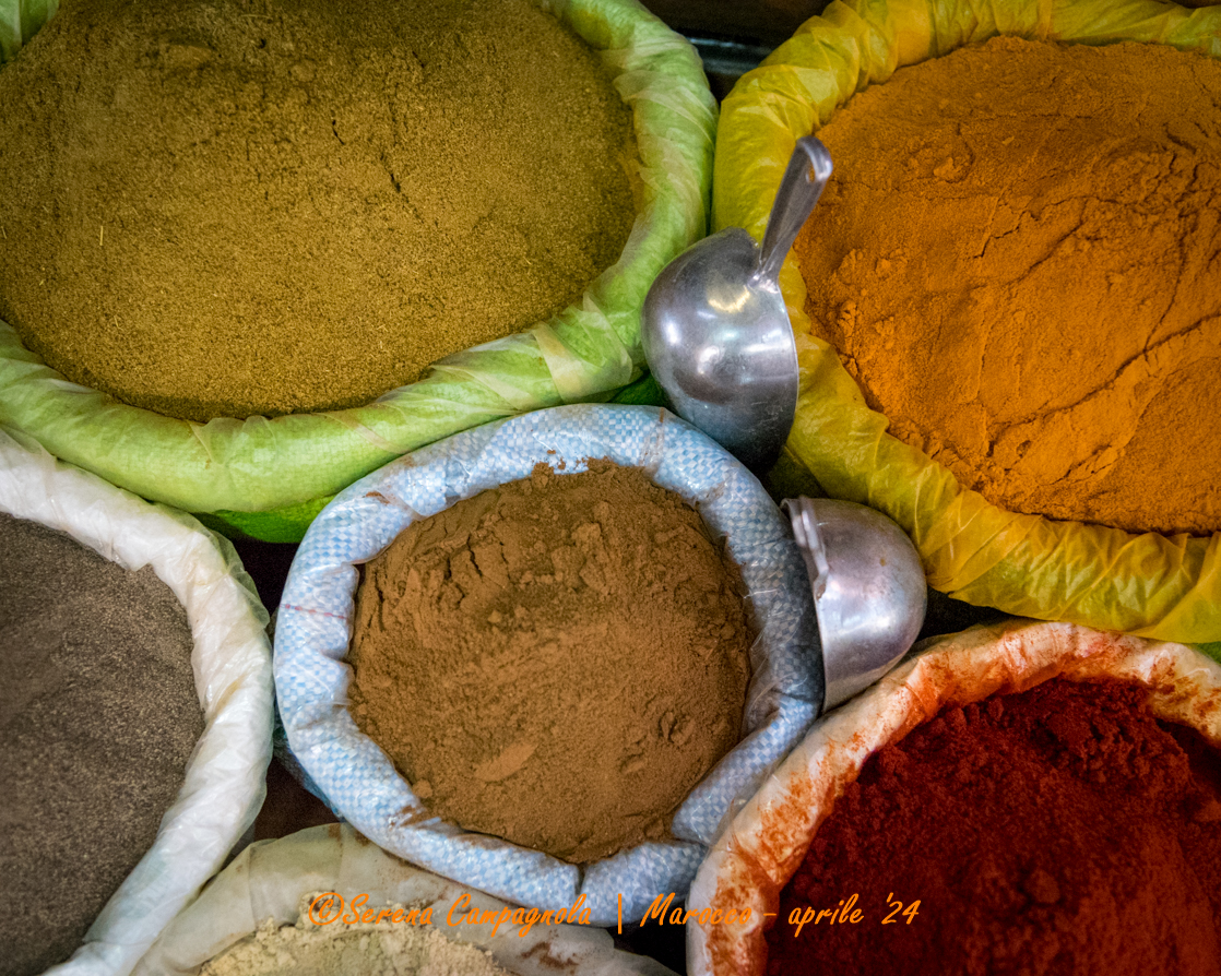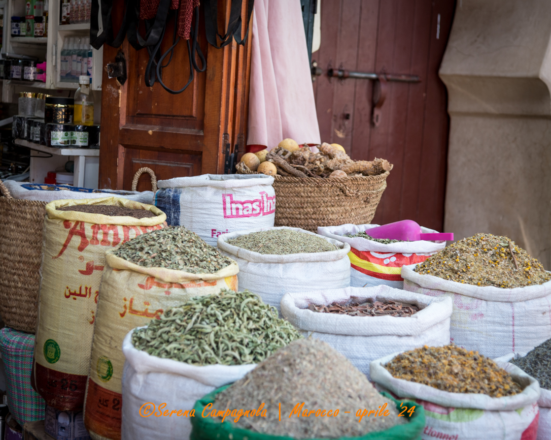 Aggiungo una nota sul CIBO. Non si tratta del mio primo viaggio in Marocco: nel 2017 ero stata a Marrakech, nel 2019 a Chefchaouen e Fez. Entrambe le volte avevo fatto molta fatica a mangiare in quanto non posso assolutamente mangiare cibo contenente spezie di alcun tipo e quantità (TOLLERANZA ZERO). Come faccio sempre ultimamente, avevo preparato l’elenco sia in inglese che in francese (onde evitare fraintendimenti) delle spezie più diffuse in Marocco che facevo leggere direttamente dal cellulare. Ovviamente, come le volte precedenti, non ho potuto assaporare la vera cucina marocchina in quanto mi hanno quasi sempre preparato un “fuori menù”. Ho sempre mangiato senza star male o dover rifiutare il piatto! Come piano B, mi ero portata anche delle barrette energetiche che non ho mai dovuto utilizzare.