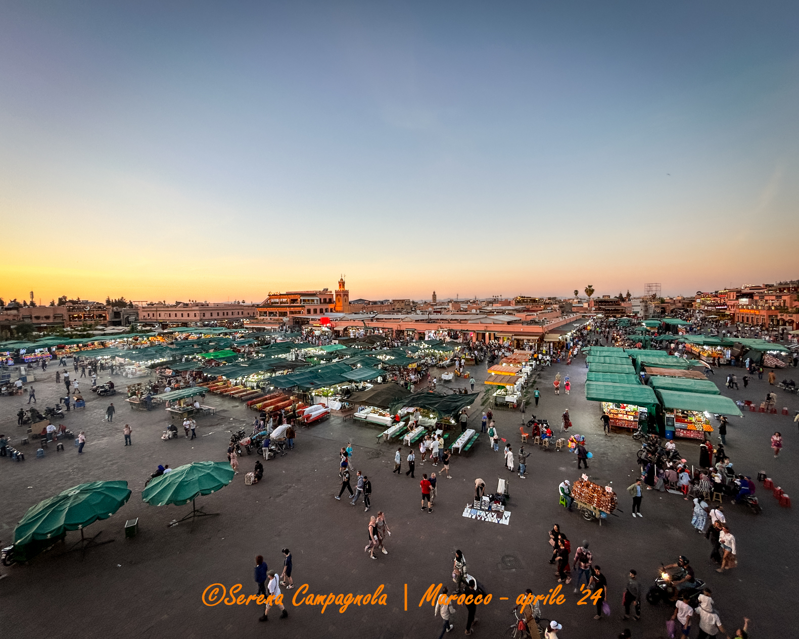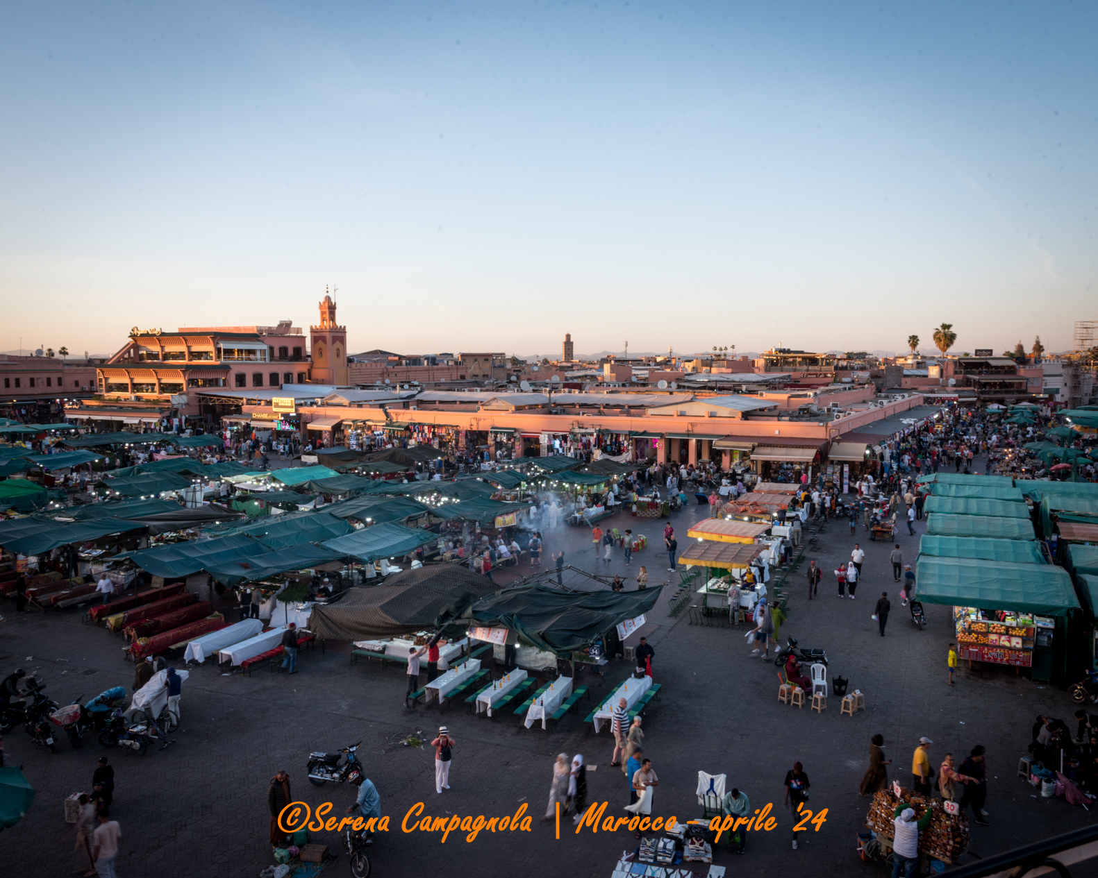 Siamo arrivate a Jemaa el-Fna prima del tramonto e abbiamo deciso di provare un’altra terrazza: l’Hôtel Restaurant Café de France! Giudicate voi dalle foto. A me sono piaciute entrambe le viste.