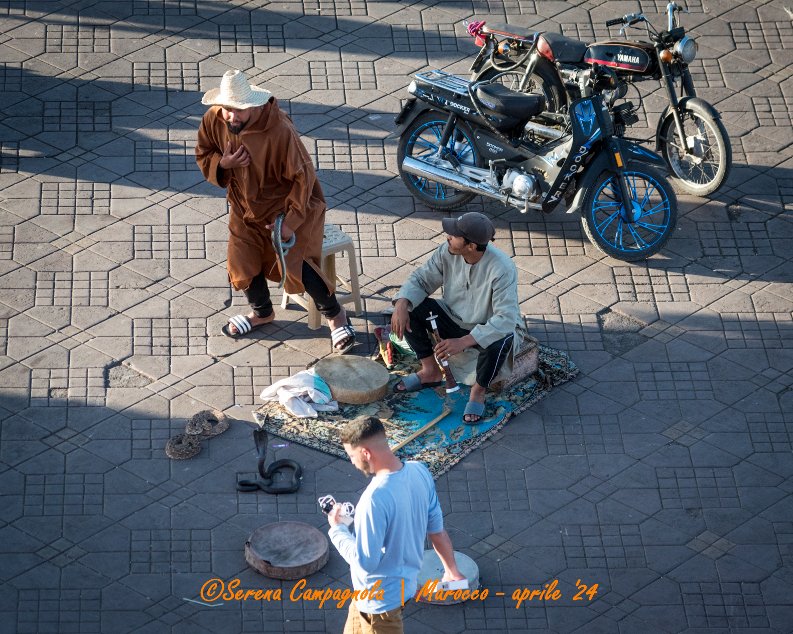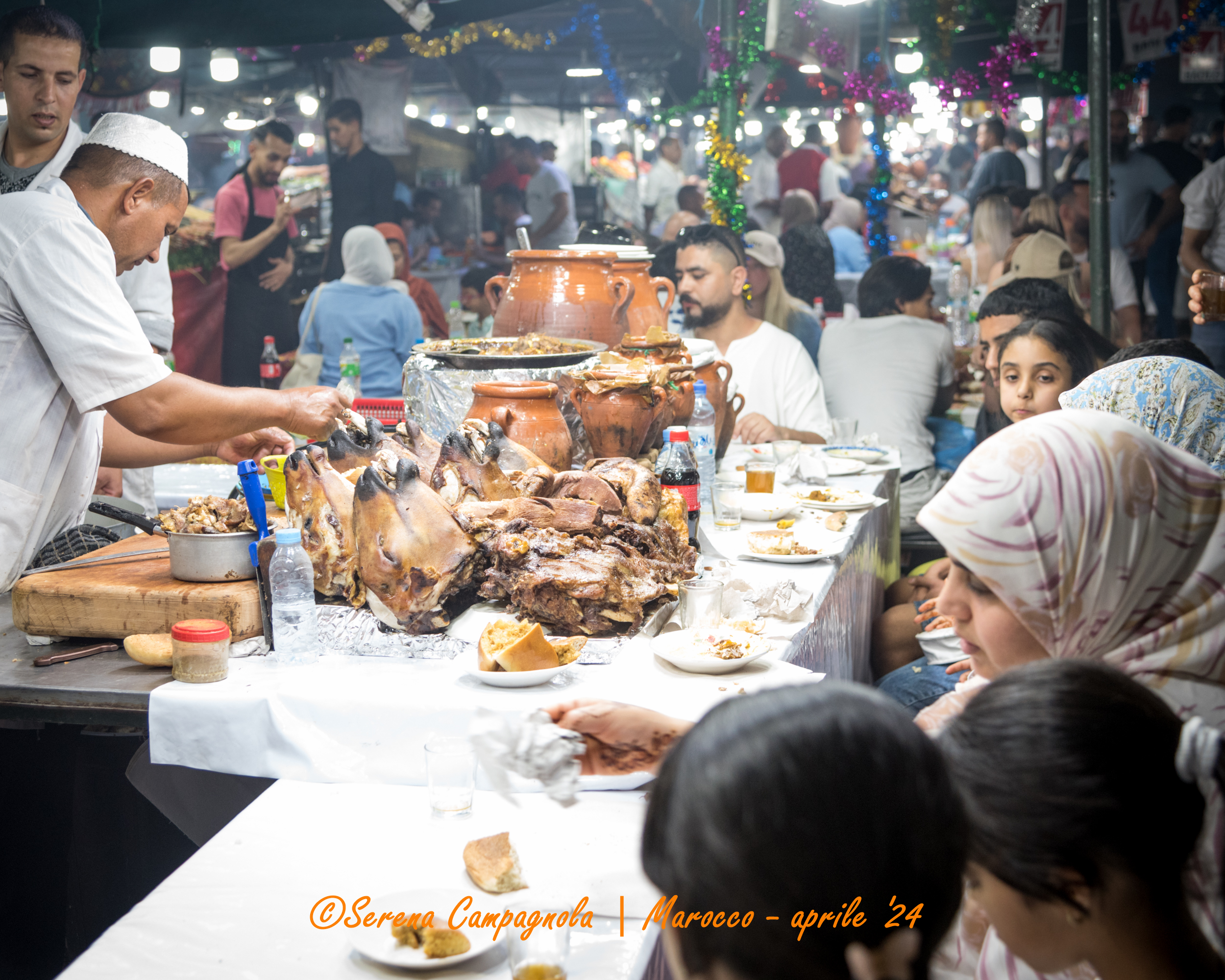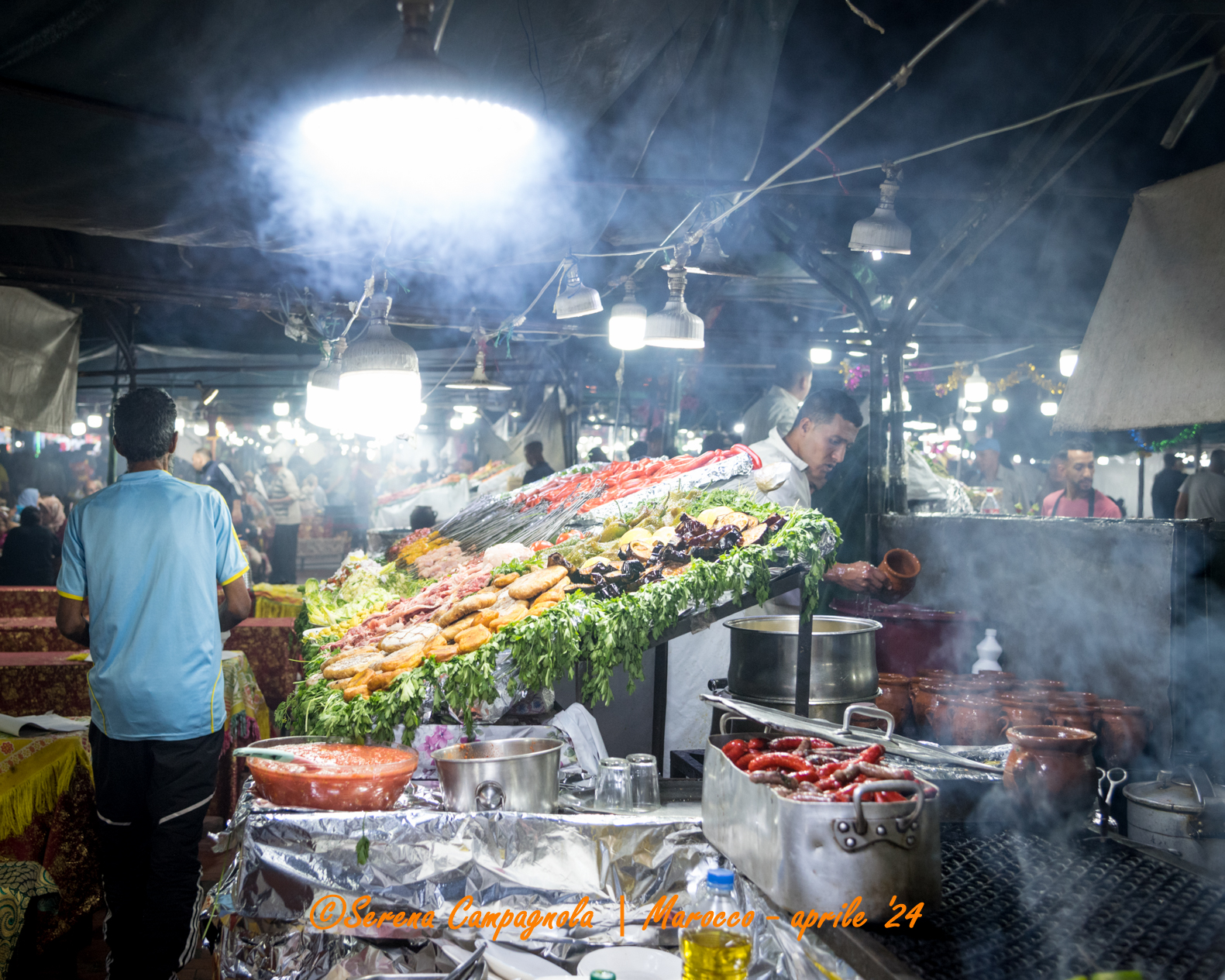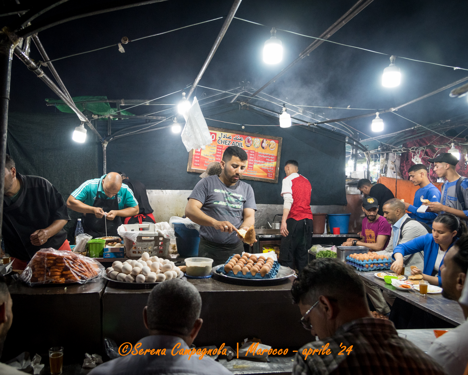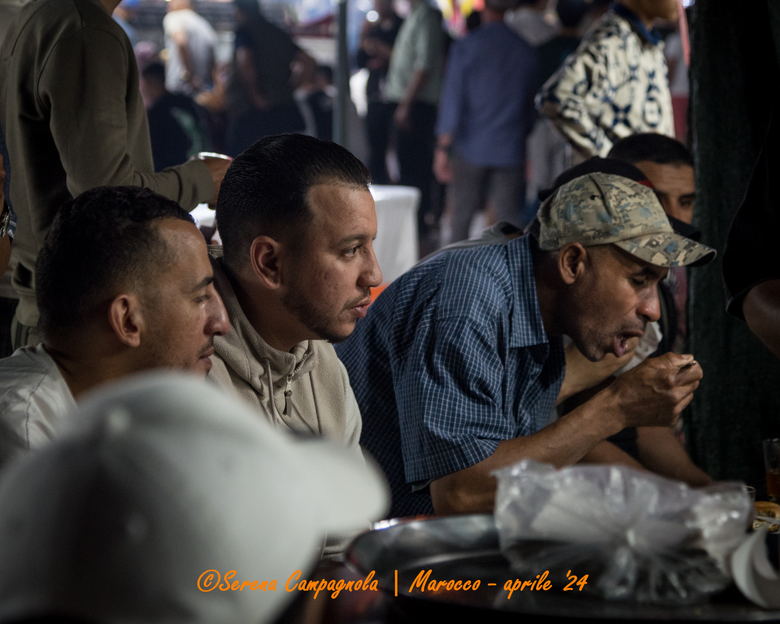 Dopo la cena abbiamo fatto un giro velocissimo in Piazza Jemaa el-Fna. Il fatto che fossero ancora tutti in festa dalla fine del Ramadan (la sera del 9 aprile) era evidente anche a noi: piazza strapiena, tantissime attività in più, tantissima gente locale… Si percepiva l’aria di festa che ha contagiato anche noi due!