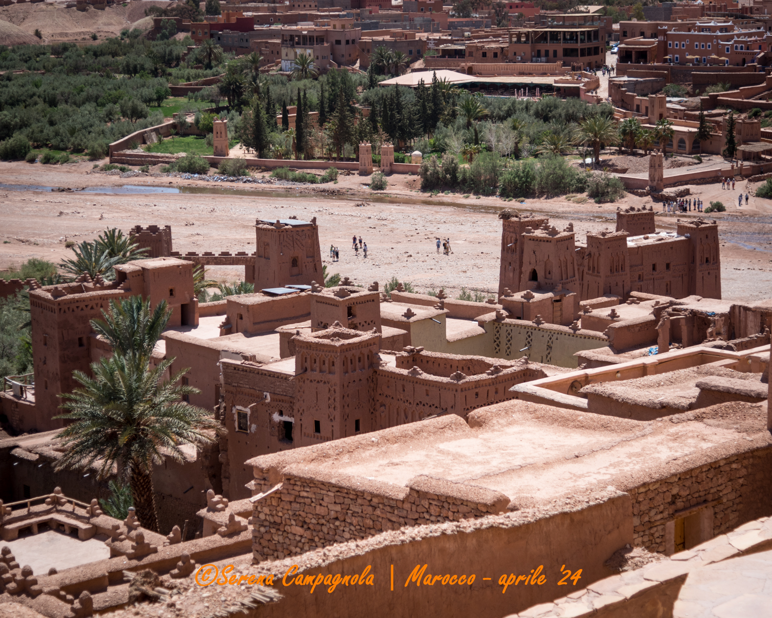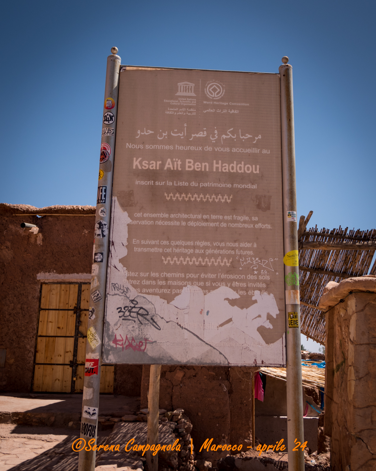 La prima vera sosta però è stata ad Ait-Ben-Haddou. BELLISSIMA!!! La città fortificata è uno dei 9 siti del Marocco che l’Unesco ha dichiarato Patrimonio dell’Umanità. Questa bellissima Ksar si trova lungo la strada del commercio che le carovane percorrevano attraverso il deserto del Sahara dal Sudan fino a Marrakech. Lo ksar è un gruppo di edifici in terra circondati da alte mura, un tradizionale habitat pre-sahariano. Dalle mura si può scorgere un panorama incantevole sul deserto e sulle montagne. Il fascino fiabesco di questo luogo ha ispirato registi che l’hanno voluto come set cinematografico di serie e film famosi come: Il Trono di Spade, Il Gladiatore (2000), La Mummia, L’uomo che sapeva troppo (1956), Kundun (1997), Gesù di Nazareth (1977), Alexander e Lawrence d’Arabia (1962).
