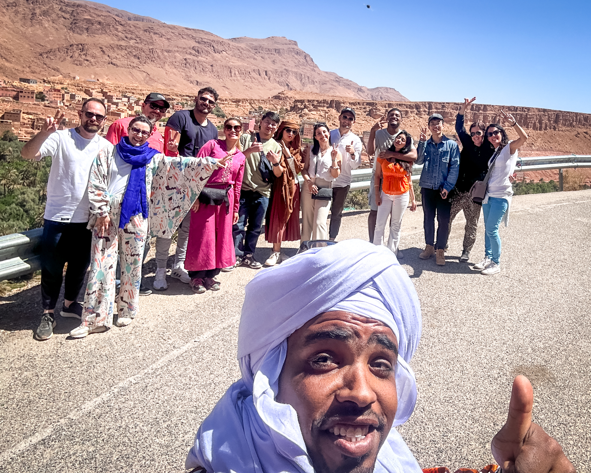 Mercoledì 10 aprile – partenza ore 7.00 da Jemaa el-Fna. Salite sul bus, si è composto il gruppo formato da 14 persone provenienti da tutto il Mondo: Italia, Filippine, Portogallo, Grecia, Costa Rica, Cina! Il gruppo è stato un valore aggiunto al viaggio perché è stato molto interessante chiacchierare e condividere quei momenti con persone provenienti da posti completamente diversi!