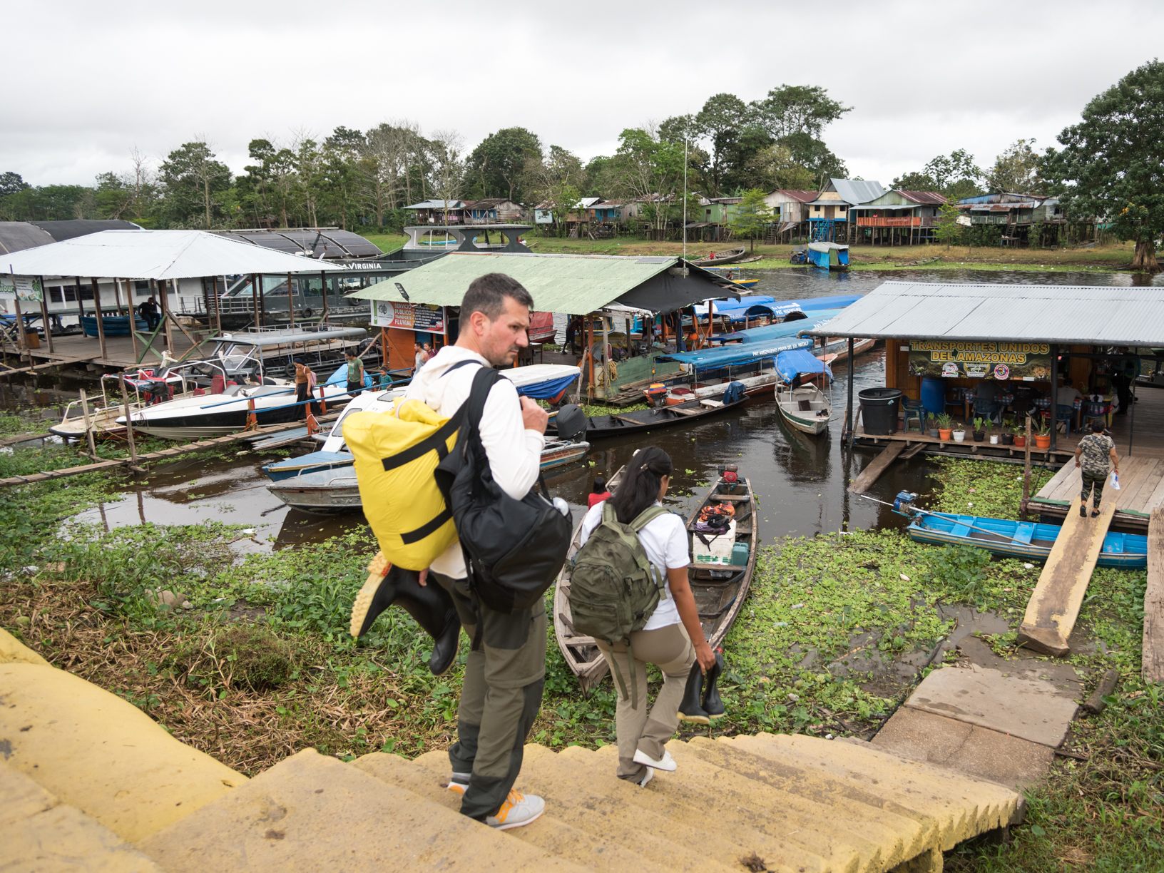 Avevamo la lancia per Mocagua per le 9 e poco prima di uscire dall’hotel ha iniziato a diluviare. Ero convinta che il mio zaino di The North Face Base Camp Voyager e la borsa K-Way Le Vrai avrebbero retto e invece no…