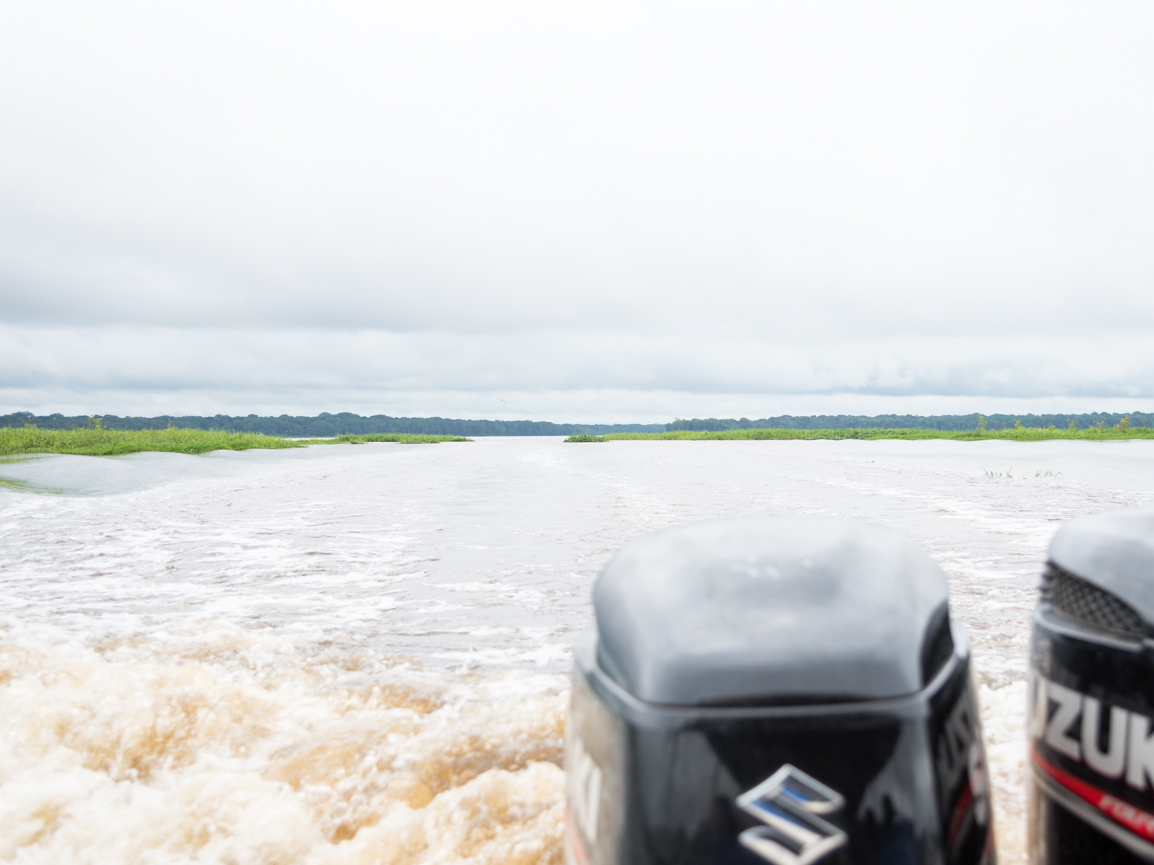 La navigazione sul Rio delle Amazzoni non me l’aspettavo così pericolosa: la corrente è veramente imponente, la visibilità dell’acqua nulla, il tutto è reso ancora più difficoltoso dalla presenza costante di tronchi giganti e da vari detriti. Inoltre, nel tratto verso nord-est (da Leticia a Puerto Nariño) si naviga contro corrente. All’andata abbiamo investito un tronco e, nonostante la rallentata all’ultimo momento, il tonfo lo abbiamo sentito insieme alle parolacce pronunciate dal comandante! Io non me ne intendo ma credo che tronchi di quella dimensione, presi controcorrente, possano fare grandi danni a quelle lance stracolme di persone.