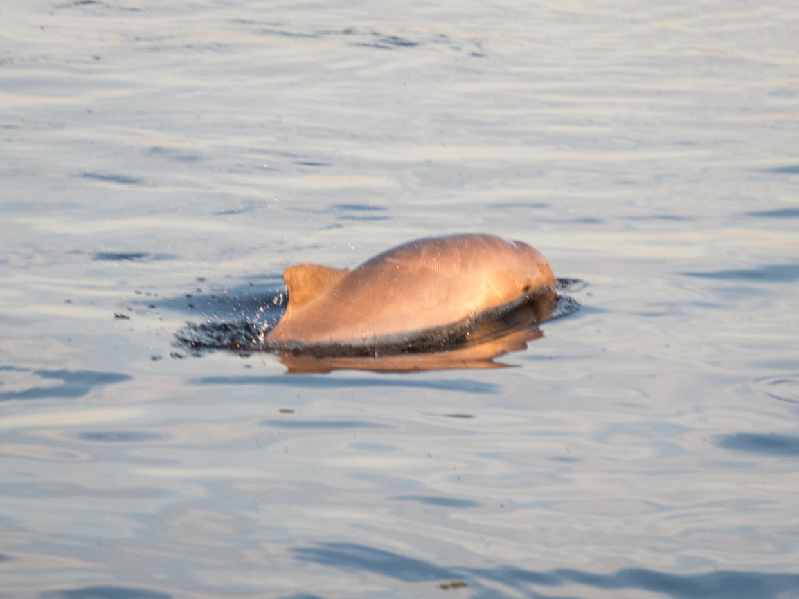Terminata l’escursione, ci siamo fermati per il tramonto e per ammirare i delfini al porto… Tra i vari grigi ce n’era uno rosa!