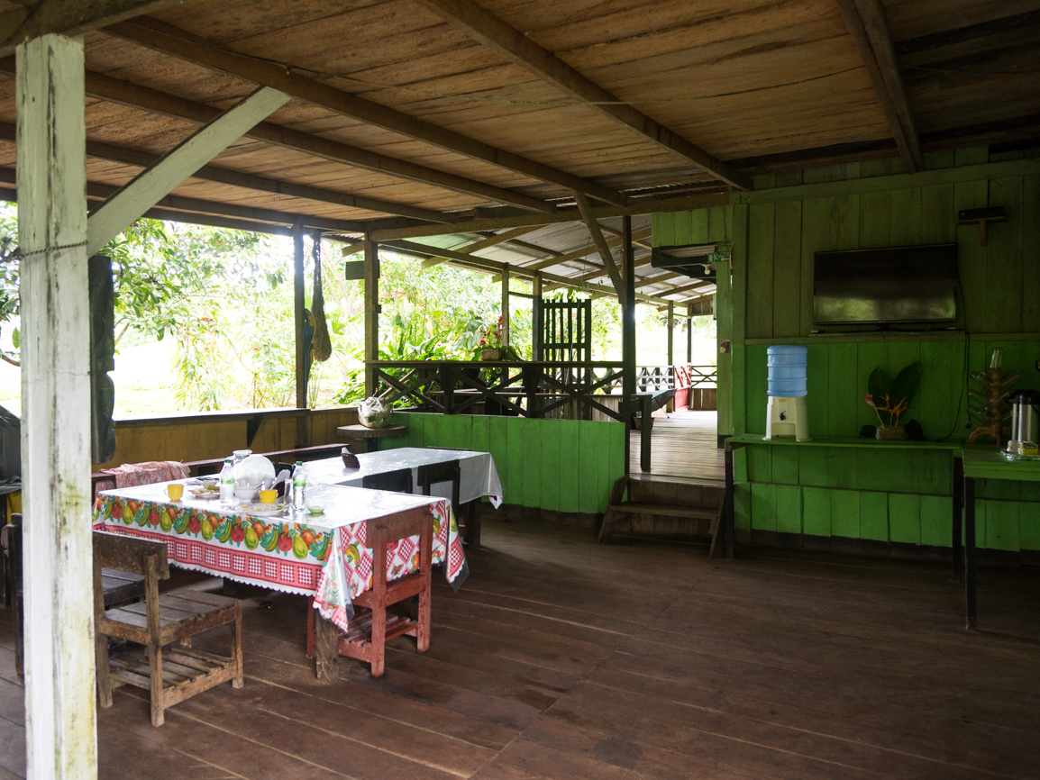 La nostra stanza era essenziale, pulita e soprattutto con l’aria condizionata, le zanzariere e un frigo. Il letto era piccolino ma comodo. Il tempo di rilassarci e cambiarci e ci hanno servito il nostro primo pranzo amazzone. Cibo semplice, buono e genuino: i nostri primi patacones, il riso e degli spettacolari fagioli!