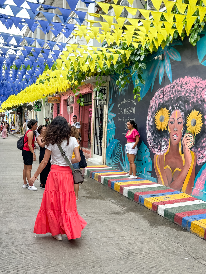 Inizialmente ero un po’ intimorita, ma volevo assolutamente vederlo! A prima vista, il quartiere Getsemani appare decadente se comparato con la Città Vecchia. Oggi, dopo un passato in cui l’area era famosa per lo spaccio di droga, la prostituzione e la criminalità, è uno dei quartieri assolutamente da non perdere! Getsemani è disseminato di bar, caffetterie e graffiti e vi assicuro che la street art qui è notevole. Diciamo che in tutta la Colombia la street art è un vero rito. Getsemani è il fulcro dell’arte di strada a Cartagena.
