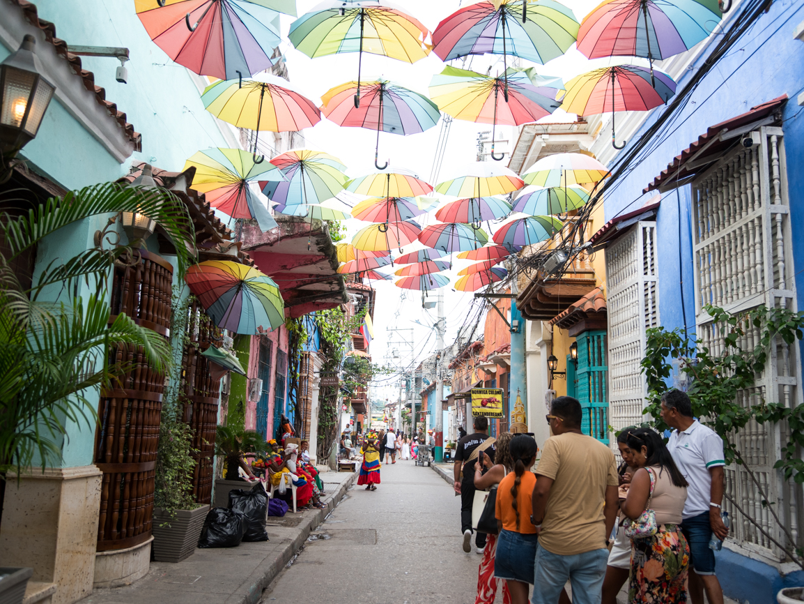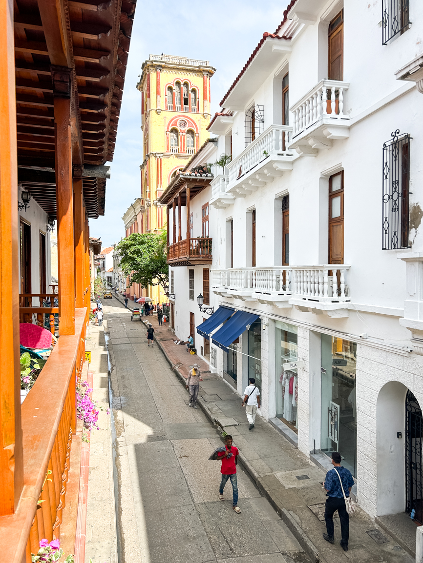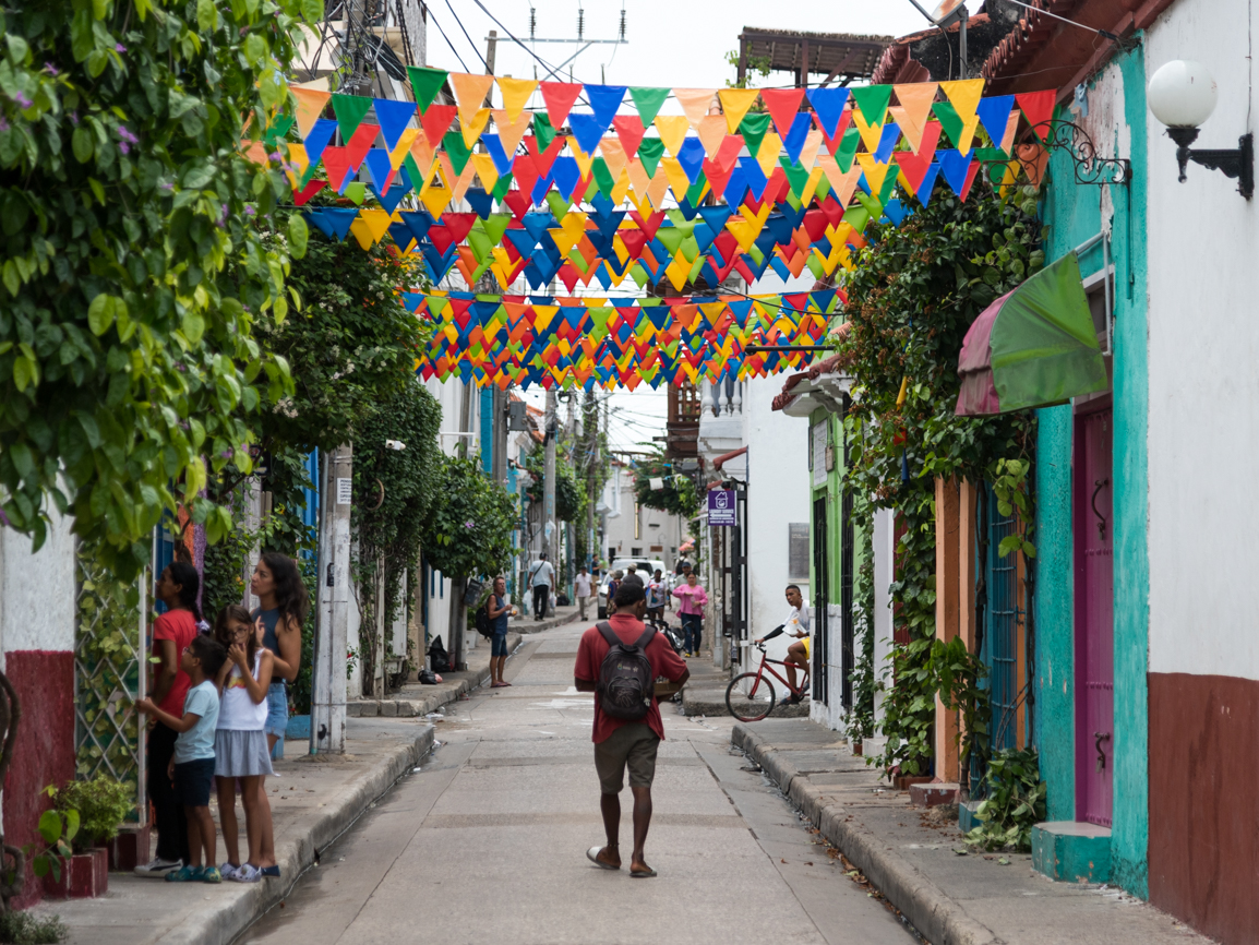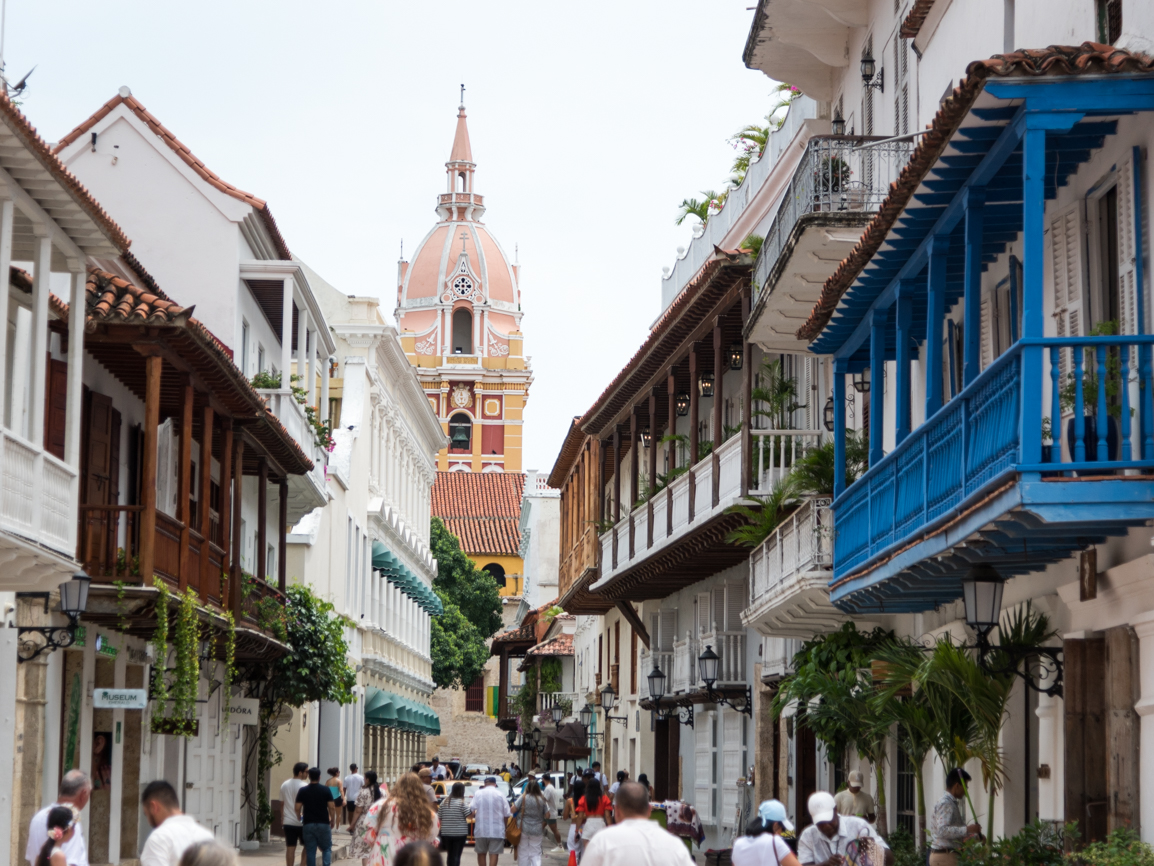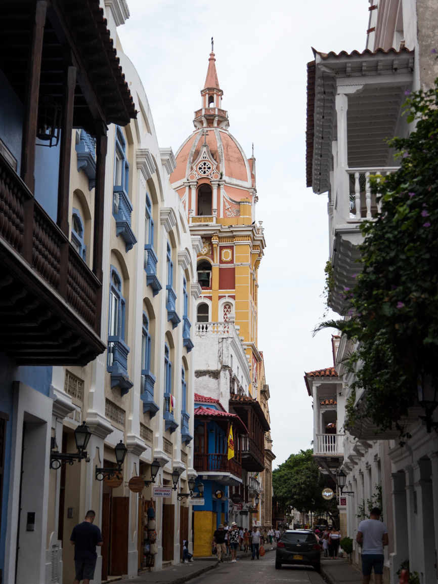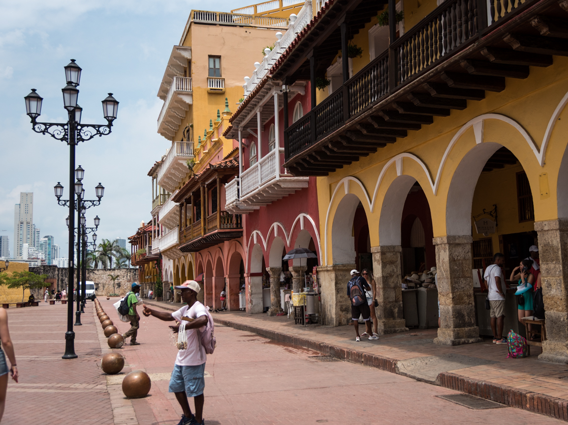 È bellissimo perdersi passeggiando nelle stradine tra le colorate case coloniali, con i balconcini di legno intarsiato ornati da cascate di fiori. Questi vicoli sfociano nelle piazze dove, ai colori e ai profumi delle bancarelle di frutta e ai gustosissimi succhi tropicali si mischiano i suoni del ritmo della salsa e delle danze latino-americane diffuse da gruppi musicali itineranti. A Cartagena, trattandosi anche del fine settimana, abbiamo trovato molti turisti (la maggior parte sbarcata il sabato dalle navi da crociera) e una grande aria di festa!