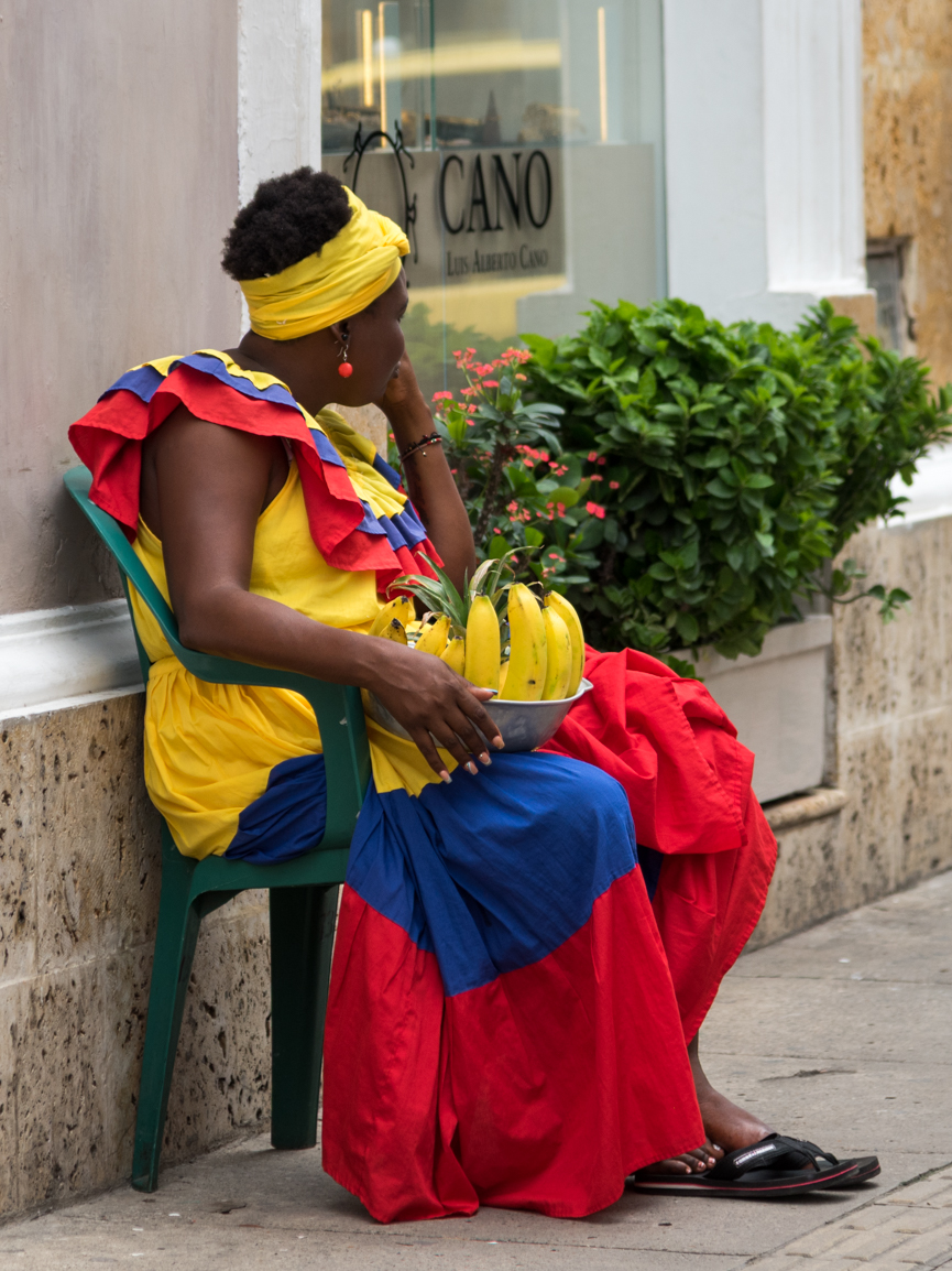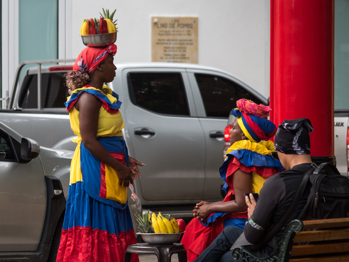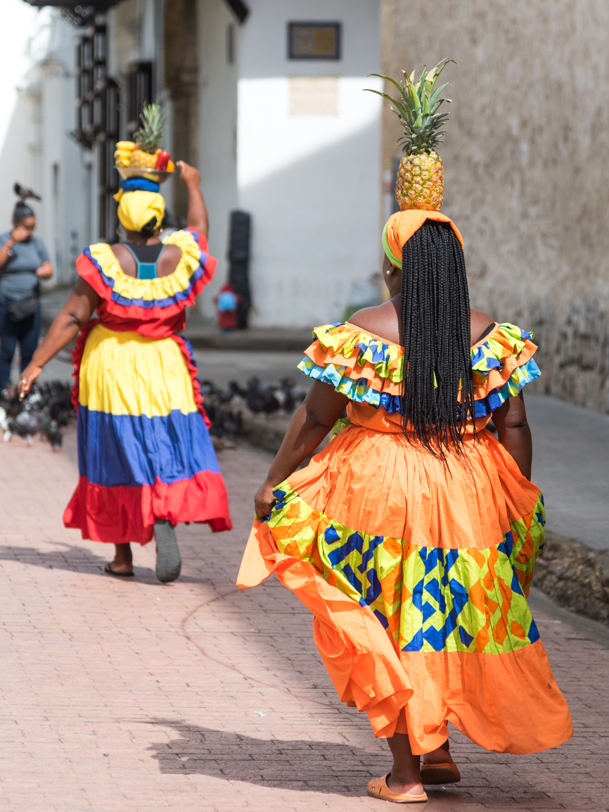Impossibile non notare per le strade di Cartagena Le palenqueras, ormai un’icona della città. Sono donne afro-colombiane, originarie di San Basilio de Palenque, un villaggio vicino a Cartagena, note per i loro abiti colorati e i cesti di frutta che portano sulla testa. Sono considerate un simbolo di forza e resistenza e pertanto rappresentano l’identità culturale di Cartagena.