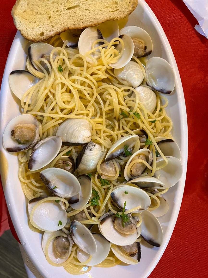 - Per cena La Pizzetta Florio. Entrambe le cene Leo ha preso la pizza ed io un primo (la prima sera con le vongole e la seconda con langostine e gamberetti). Piatti molto buoni e prezzi onestissimi. La seconda sera abbiamo conosciuto il proprietario appena rientrato da Roma.