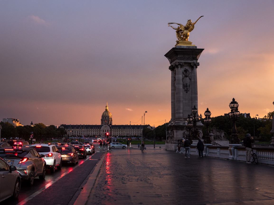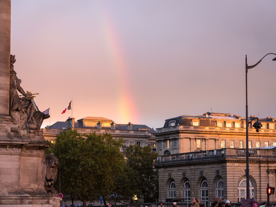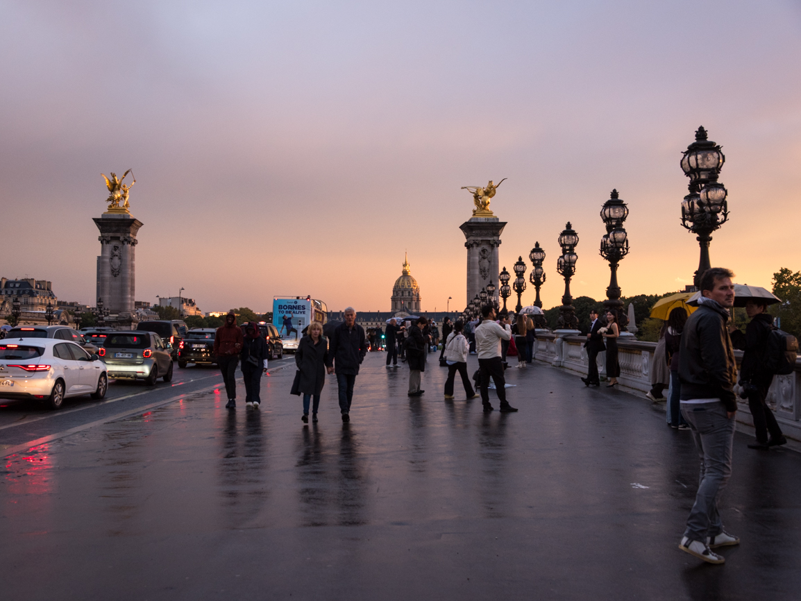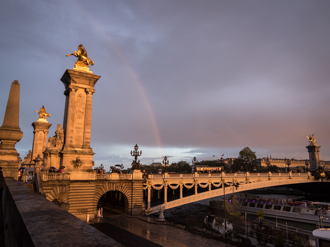 Abbandonato quello spettacolo umano ci siamo diretti verso l’Avenue des Champs-Élysées. Giusto il tempo per fare qualche foto e siamo tornati verso la Senna per ammirare Pont Alexandre III e l’Esplanade des Invalides. Abbiamo avuto la fortuna che tra uno scroscio di pioggia e l’altro, oltre all’arcobaleno sia uscito anche un discreto tramonto.