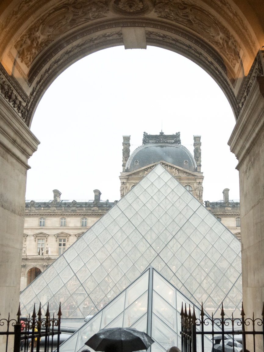 Mentre pranzavamo abbiamo prenotato la visita al Louvre. Speravo di saltare la coda visto che avevamo il biglietto con l’orario d’entrata e invece ci siamo fatti più di 1 ora di coda sotto l’acqua abbondante e incessante!