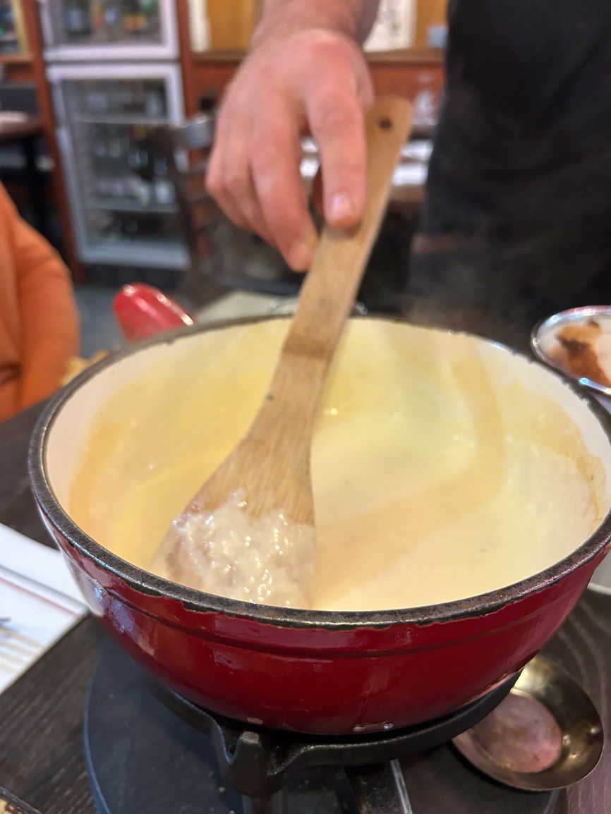 Abbiamo fatto un piacevolissimo pranzo al Bistrot Vingt (a due passi dal nostro appartamento). Abbiamo preso un antipasto misto di salumi e formaggi, una porzione per due di formaggio fuso (spettacolare!!!), tre insalatone, tre birre medie, una piccola, acqua e caffè. Spesa totale € 154,50. Devo dire che il titolare è stato molto cortese e disponibile a spiegarci il menu. Il cibo è veramente buono. Il locale è molto particolare, un po’ pacchiano ma molto caratteristico!