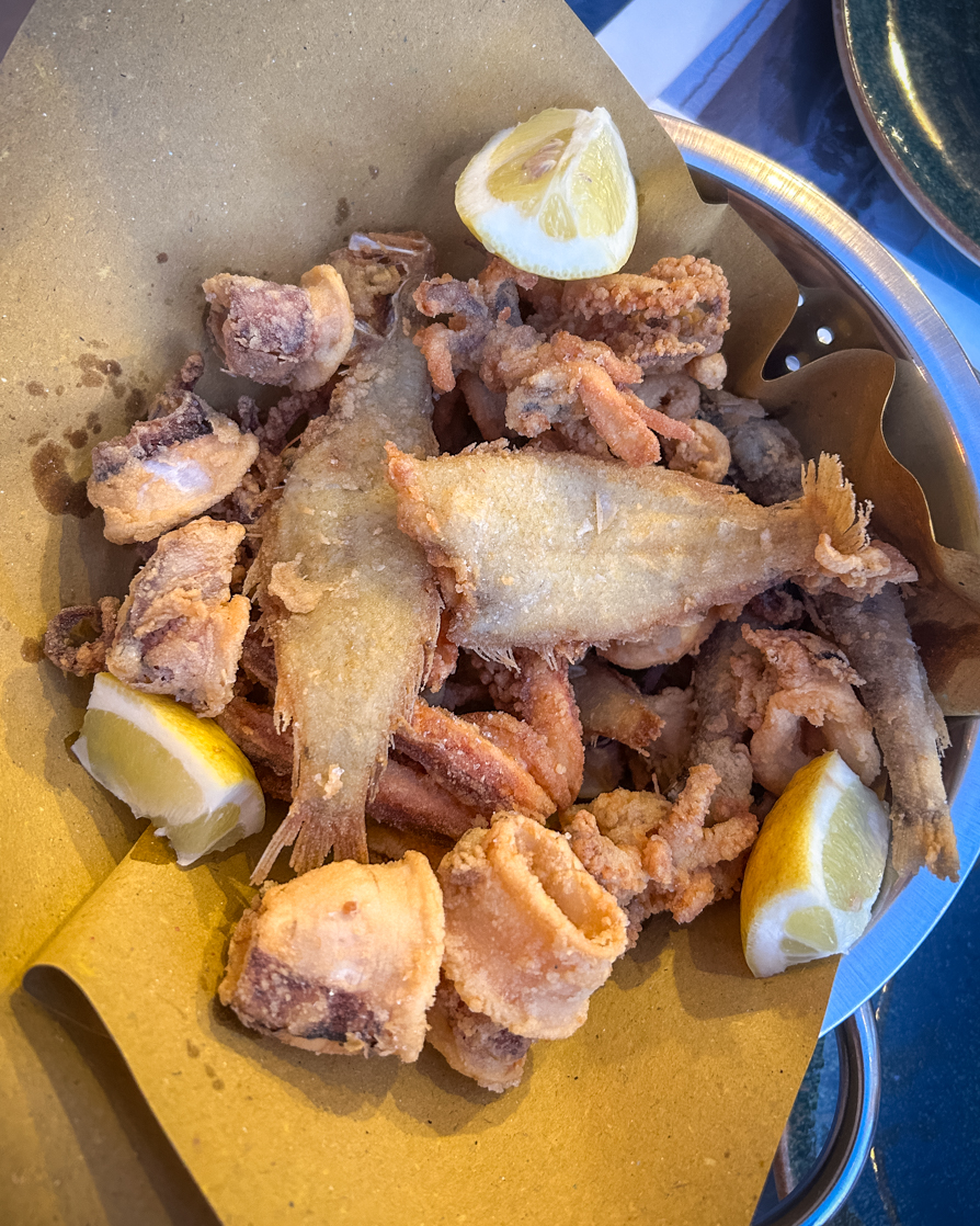 Stanche dalla giornata abbiamo deciso di fare aperitivo-cena da Calamarò Portodimare. Ci siamo rilassate in riva al mare ordinando 2 birre Messina, 1 porzione di fritto misto (veramente abbondante) e 1 porzione di patatine fritte. Spesa totale € 47. Il locale è veramente carino e regala un bellissimo tramonto.
