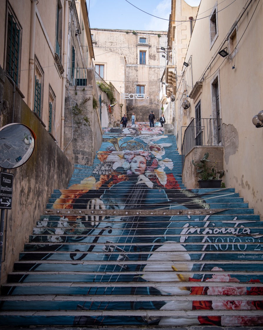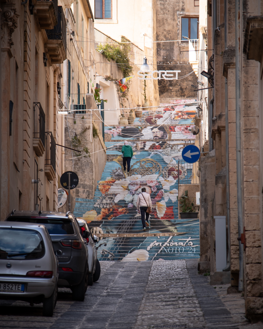 L’infiorata di Noto del 2024 era dedicata a Giacomo Puccini in occasione del centenario della sua morte. Abbiamo ammirato due scalinate che partono da Via Cavour dedicate a lui…