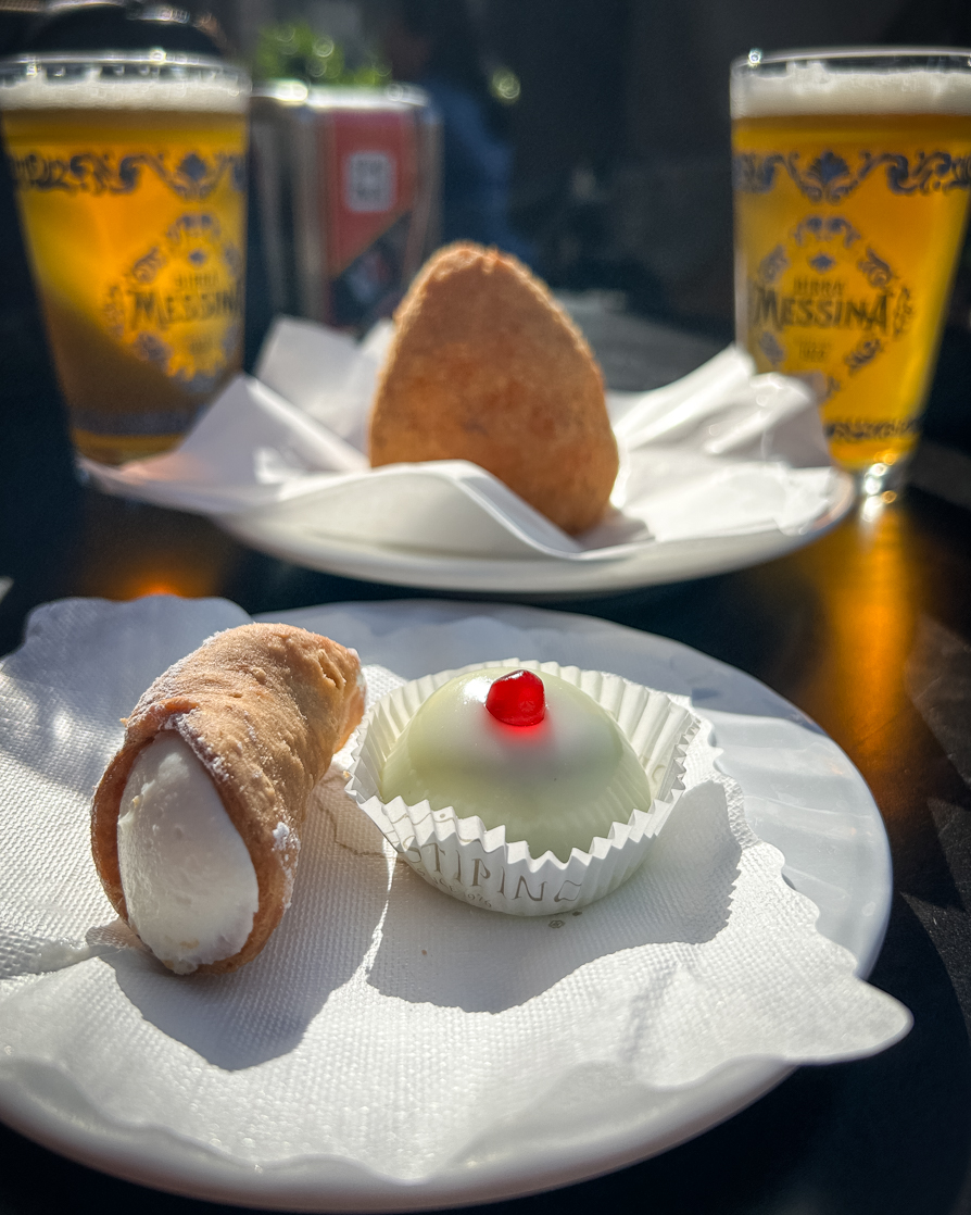 Immancabile l’aperitivo “rinforzato”, io con un arancino e Mic con qualche mignon di dolci, da Prestipino!