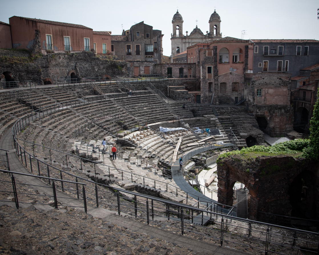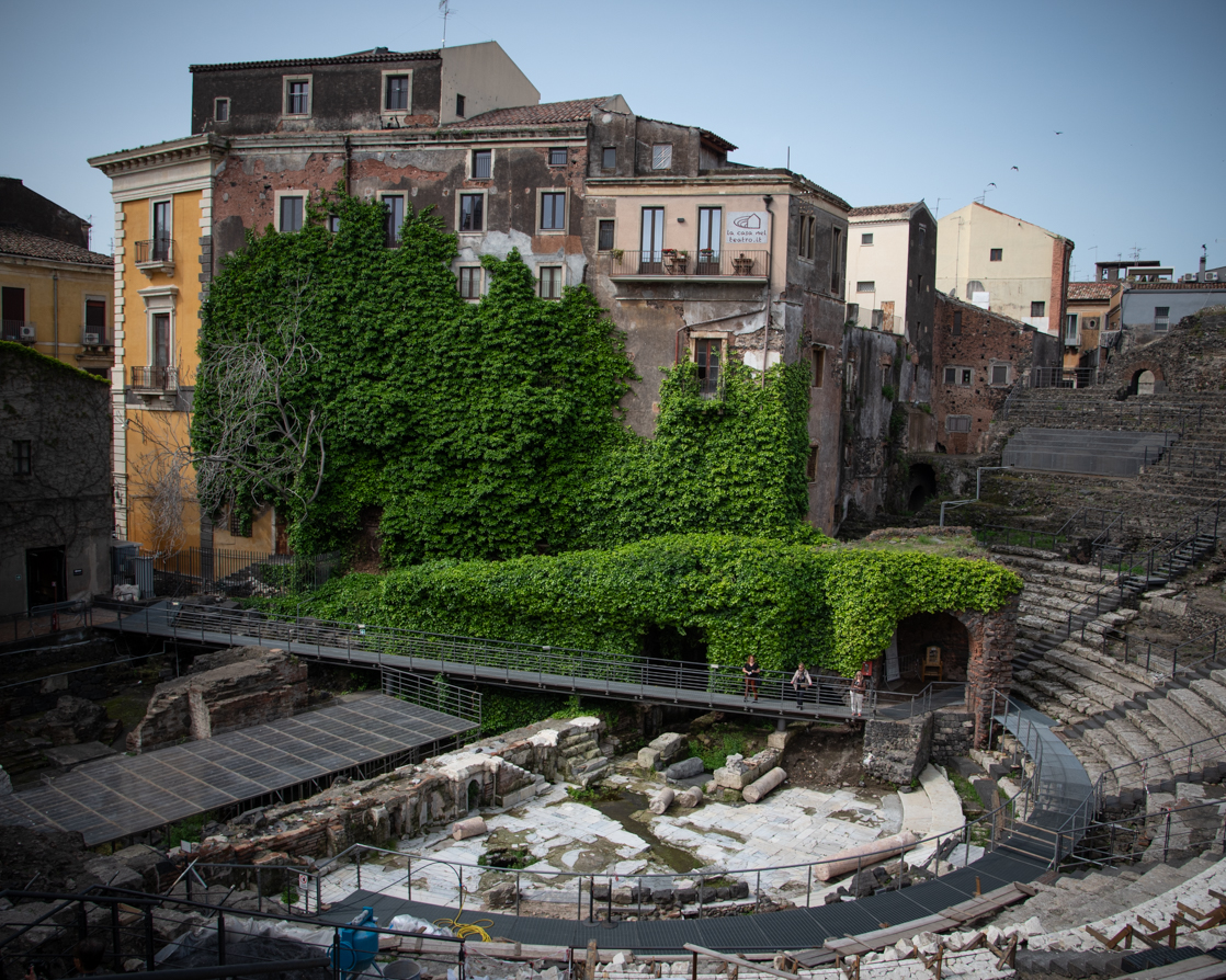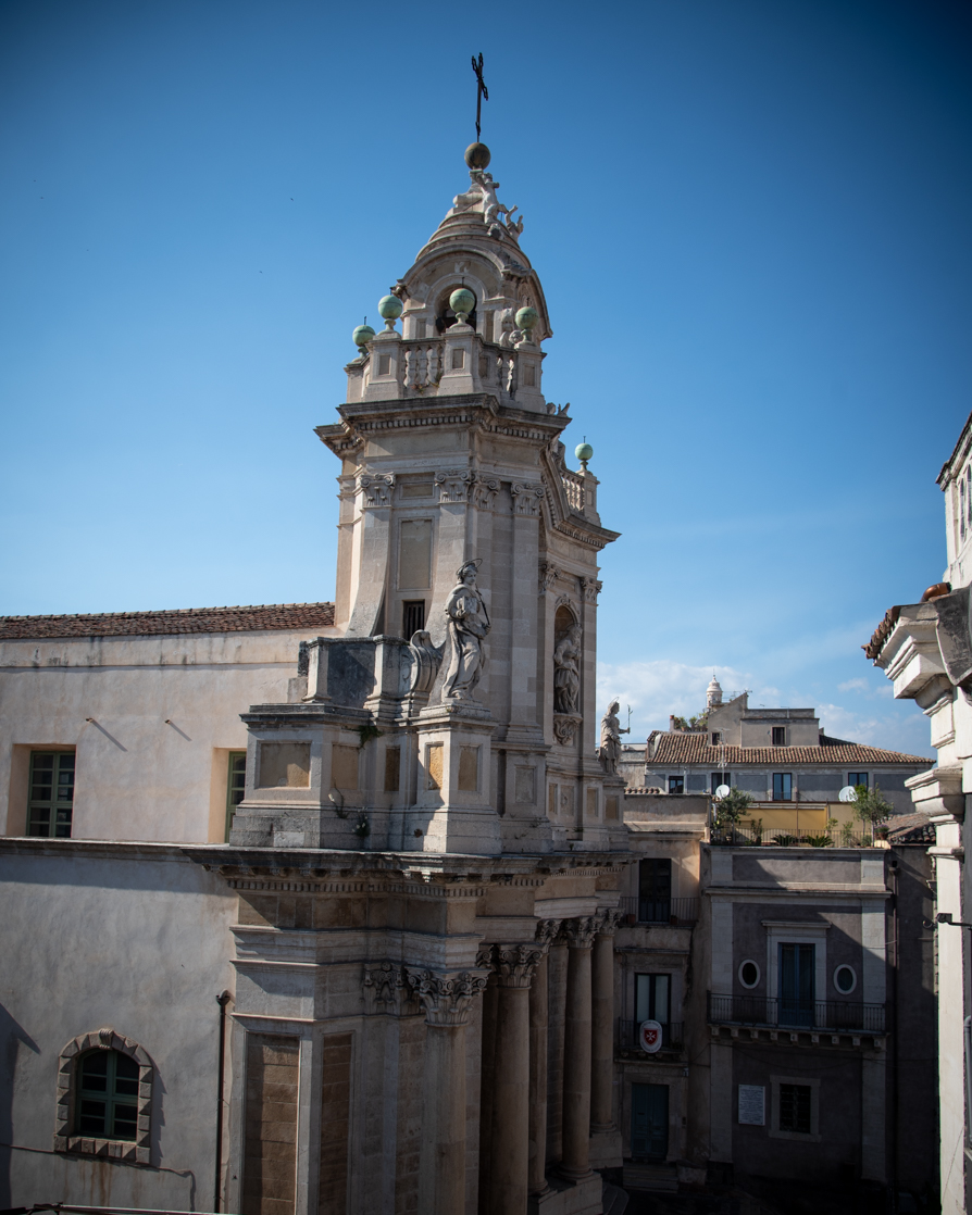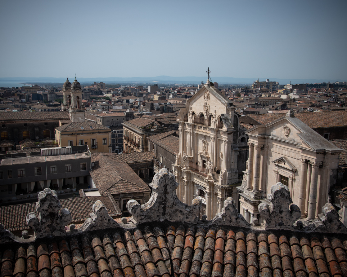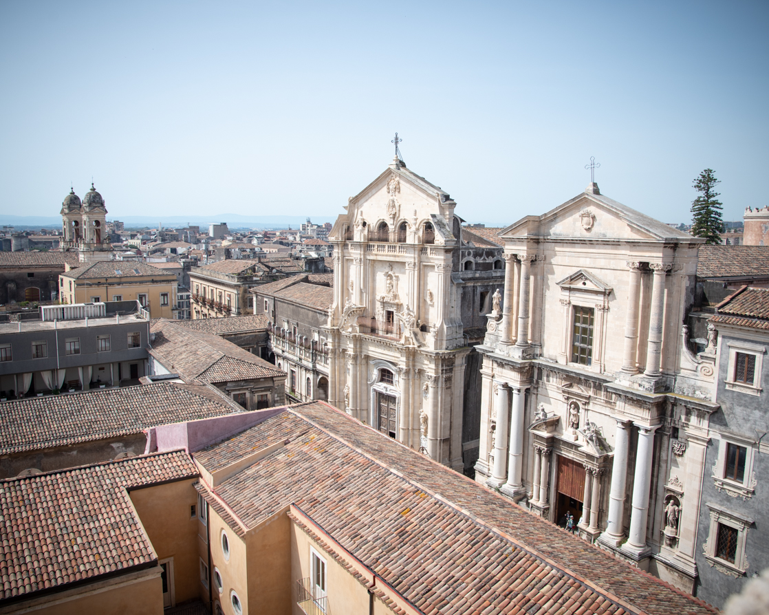 Abbiamo ammirato la facciata della Chiesa di San Francesco d’Assisi e abbiamo continuato verso il Teatro Antico (ingresso € 8). Consiglio di entrare sia a visitare il duomo che il teatro! Terminata la visita abbiamo percorso Via Crociferi passando sotto l’arco di San Benedetto. Abbiamo ammirato la Chiesa di San Benedetto e siamo salite sui “tetti” dalla Chiesa di San Giuliano (salita € 5). Ritengo moooolto interessante la vista dall’alto!