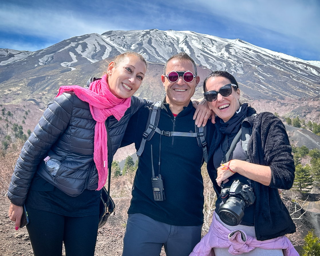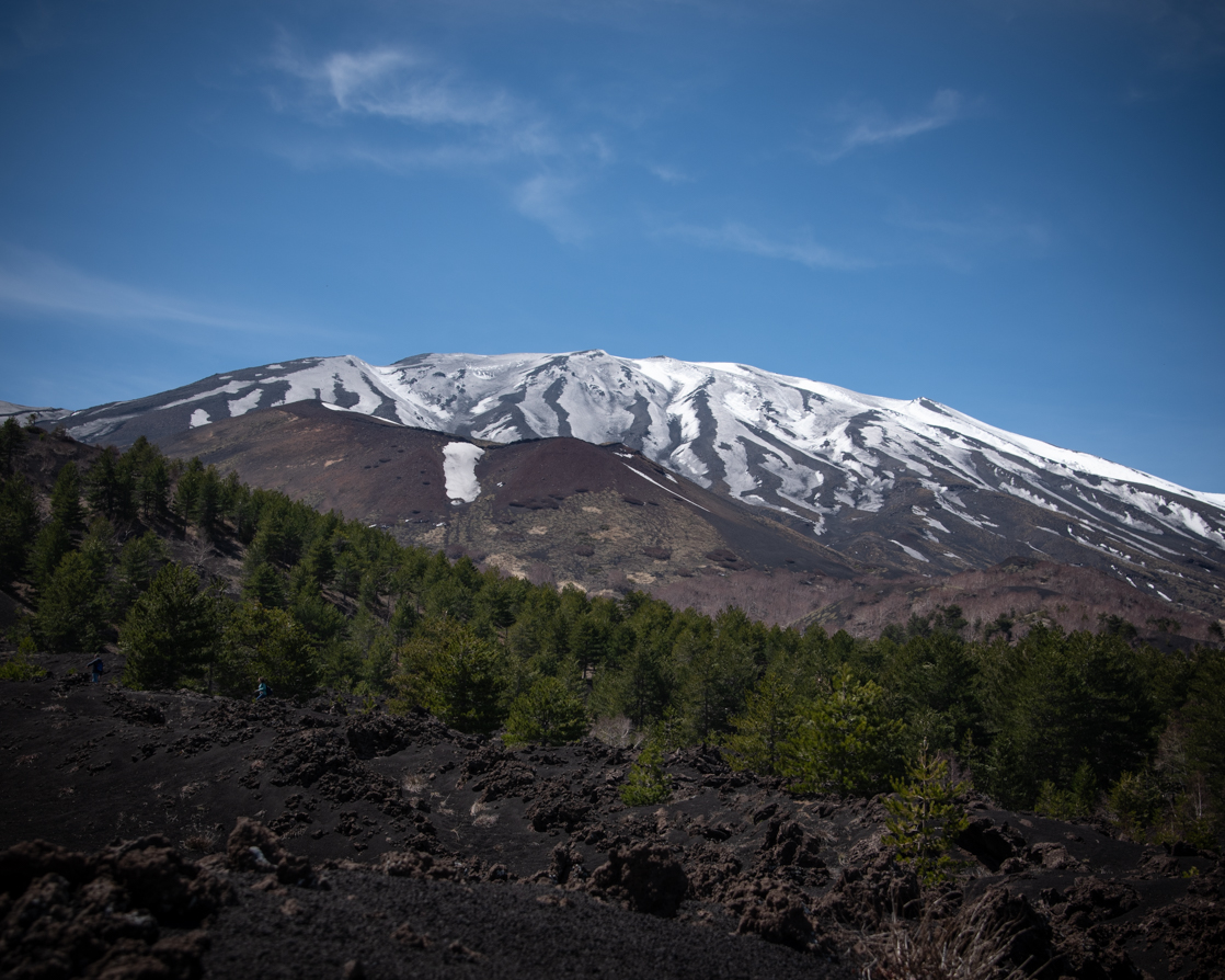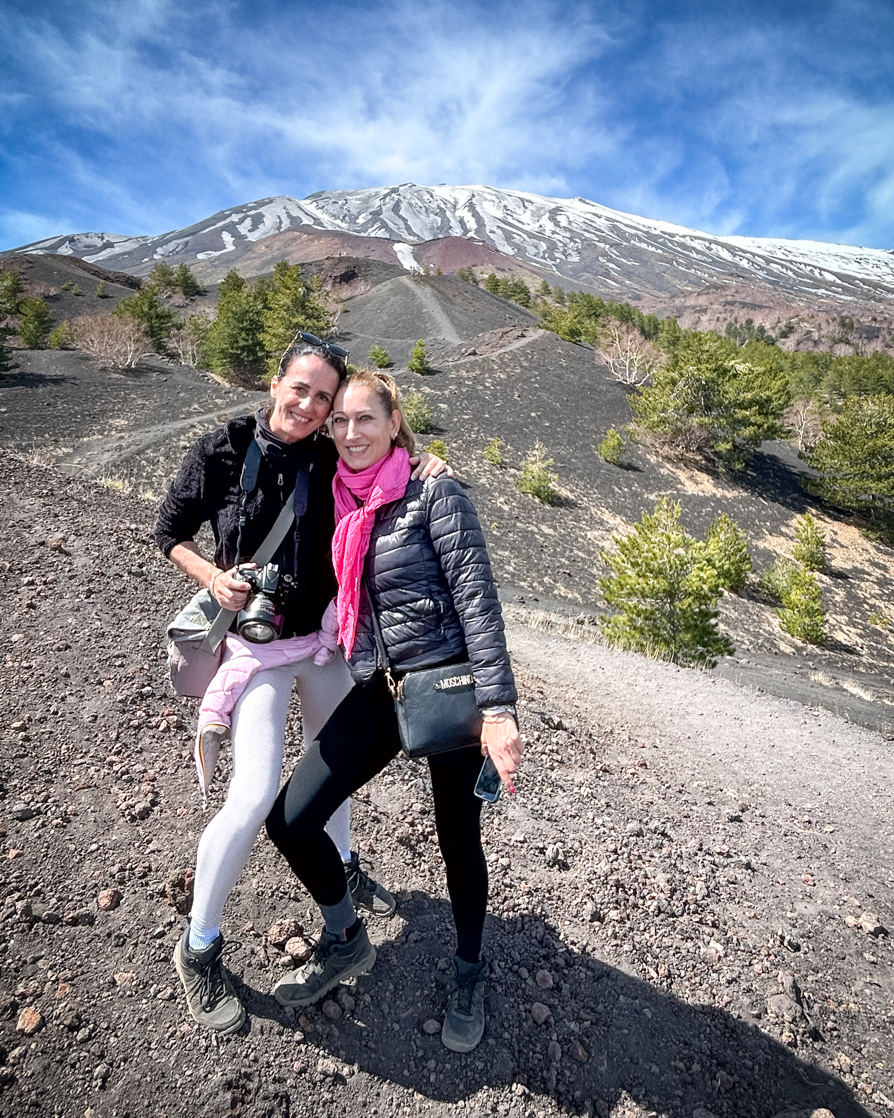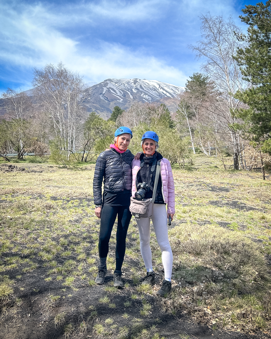 Siamo state fortunate perché abbiamo goduto di una giornata limpida in cui il colore intenso del cielo creava uno splendido contrasto con il nero dell’Etna.
