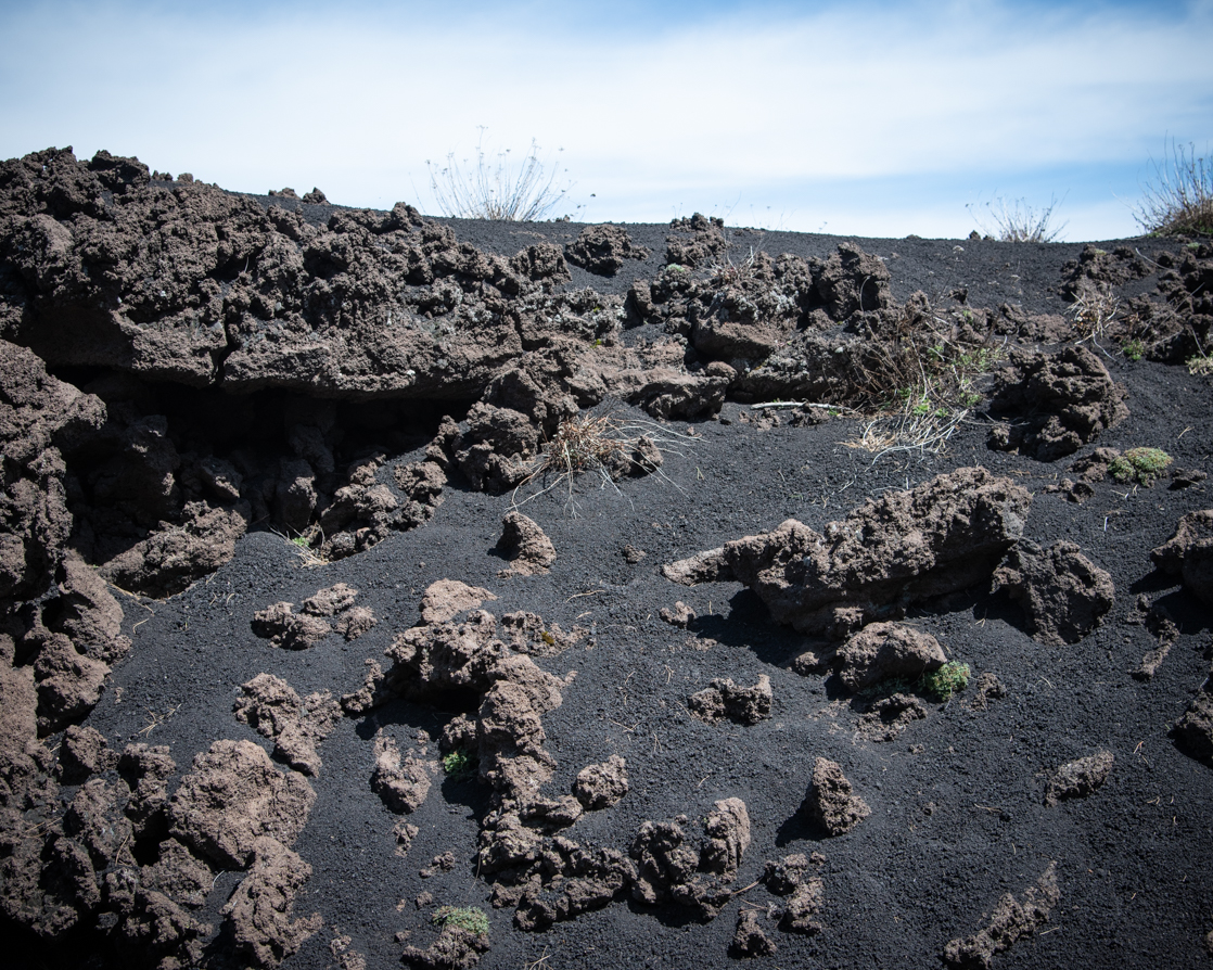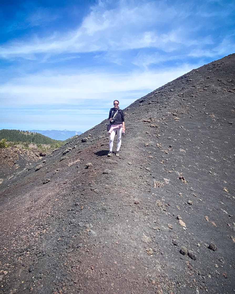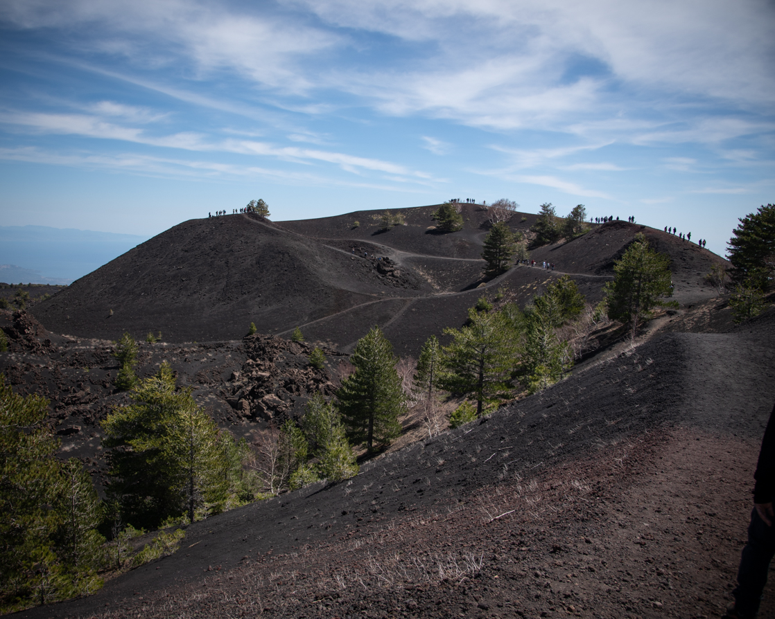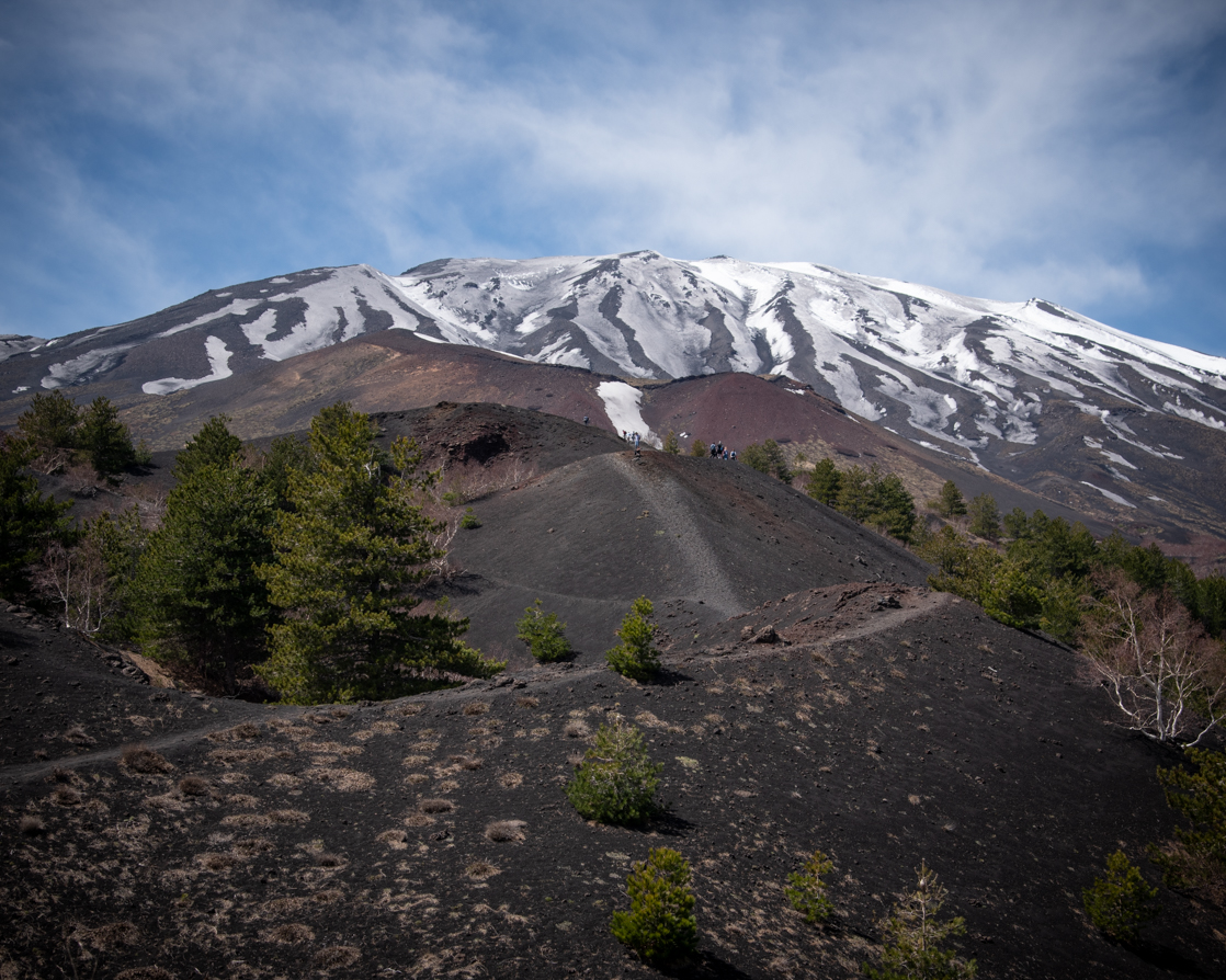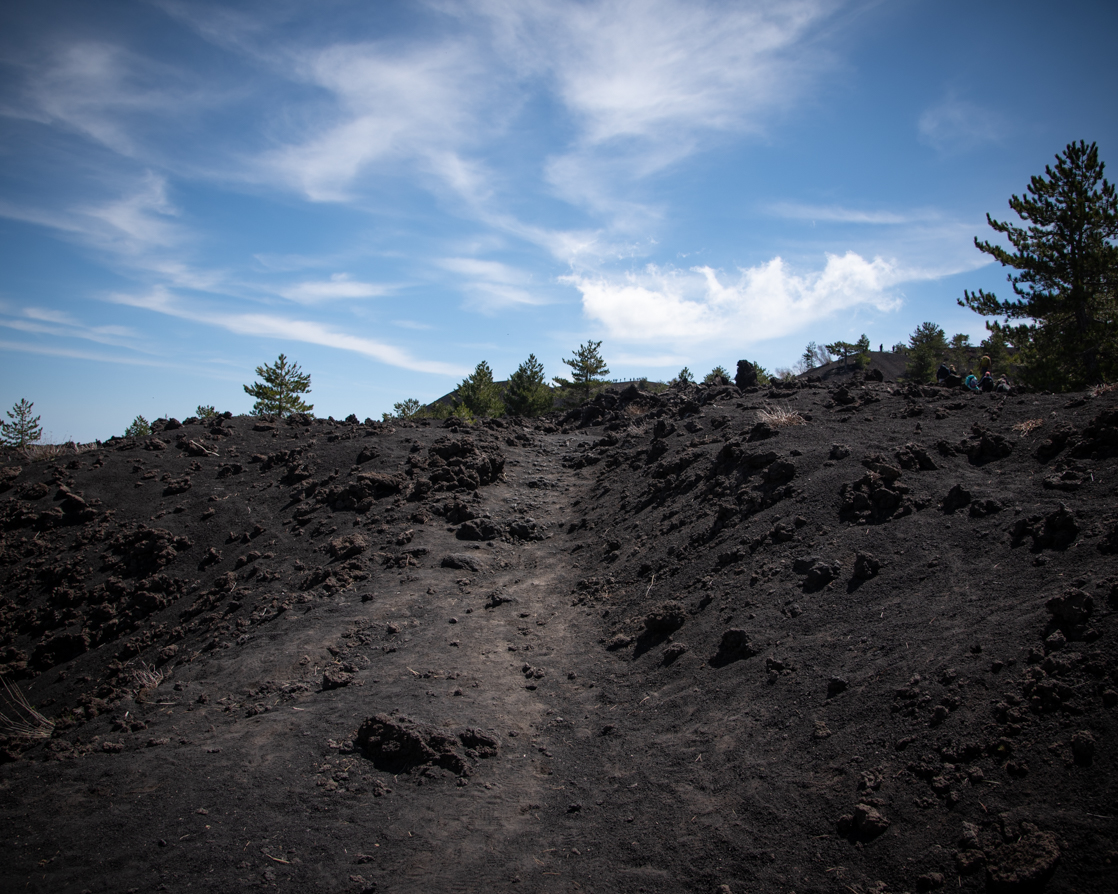 Siamo state fortunate perché abbiamo goduto di una giornata limpida in cui il colore intenso del cielo creava uno splendido contrasto con il nero dell’Etna.